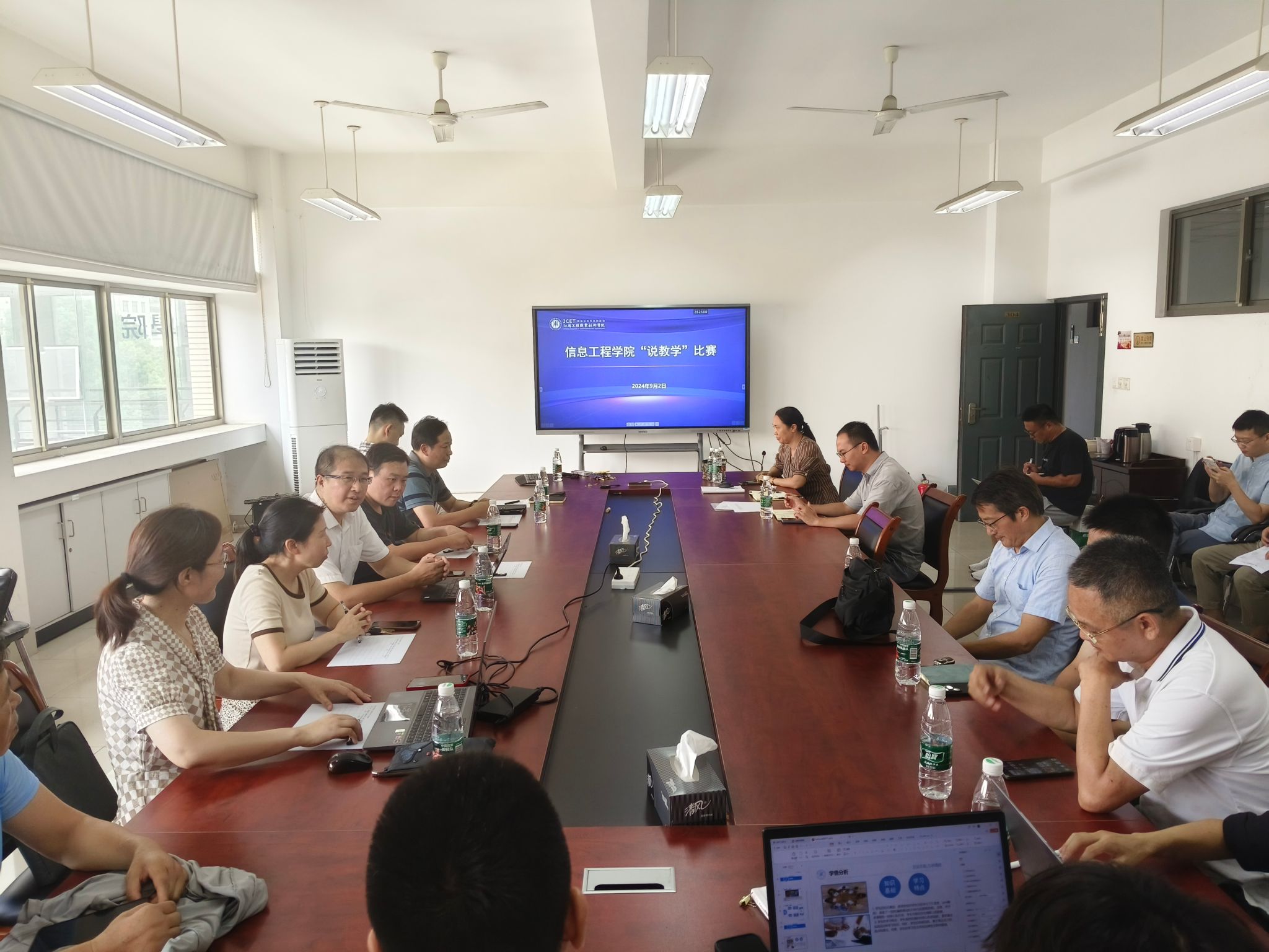 9月2日下午,信息工程学院2024年“说教学”比赛在强毅楼304举行。教务处副处长黄海涛、纺织服装学院隋全侠教授、建筑工程学院孟翔副教授作指导点评,学院副院长范君、王欣、党总支副书记高飞及全体教师共同观摩了现场比赛。