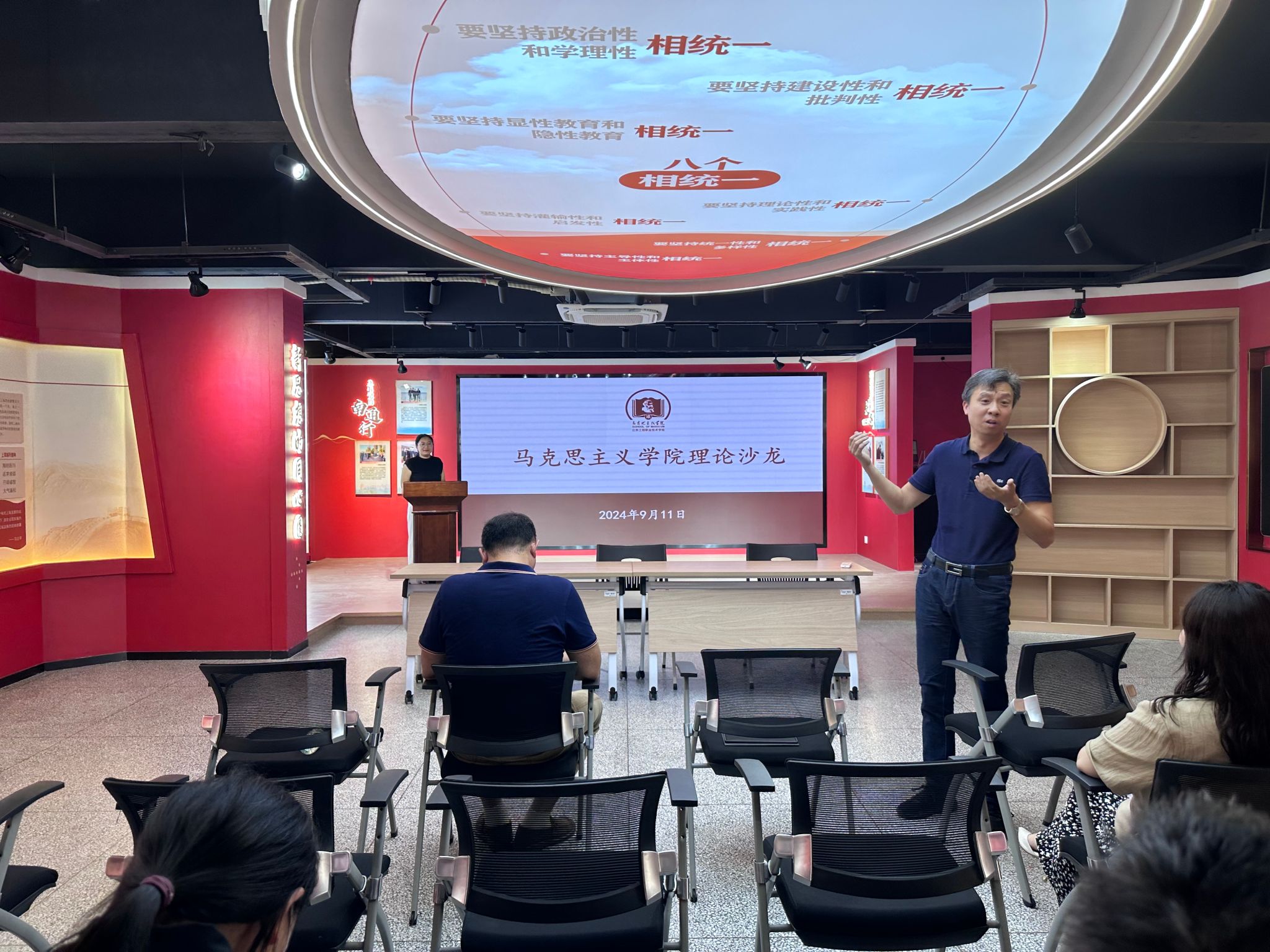 在热烈庆祝全国第40个教师节之际,马克思主义学院举办了以“志为大先生 功在新时代”为主题的学习活动。全体思政教师齐聚一堂,围绕学习贯彻党的二十届三中全会精神进行学习交流,大力弘扬教育家精神,共话教育强国的使命与担当。