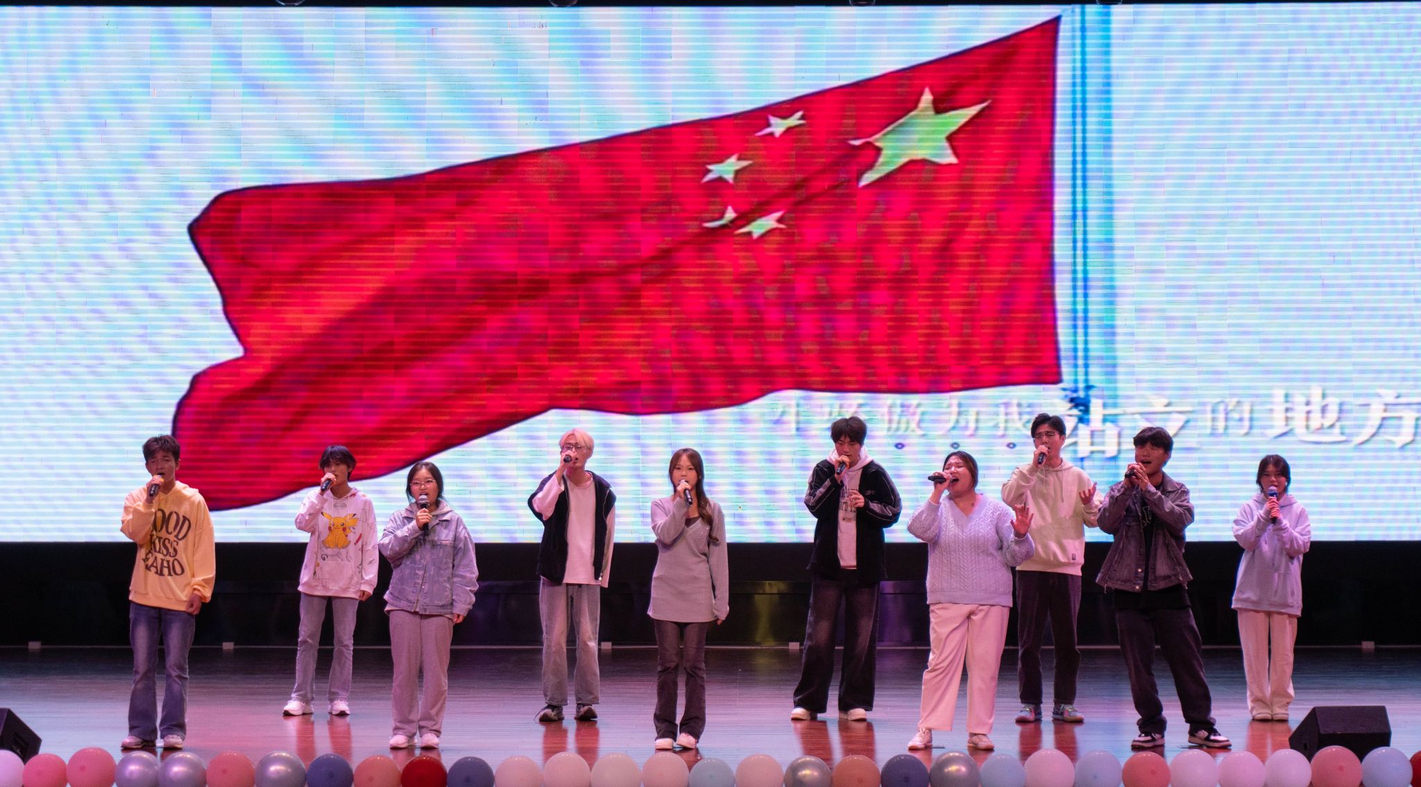 学院领导班子成员和学工团队精心准备了教师节目为新生送上祝福。白林、吴颖、徐保玮、孙潇宇、张正维、袁媛等老师共同为学生表演了歌曲串烧。24级新生班主任集体朗诵《七十五载,巍巍中华》,用真挚饱满的情感抒发了对祖国的无限热爱与忠诚。老师们的节目把对新生的关爱与希冀融入表演中,将整场晚会的气氛推向高潮。