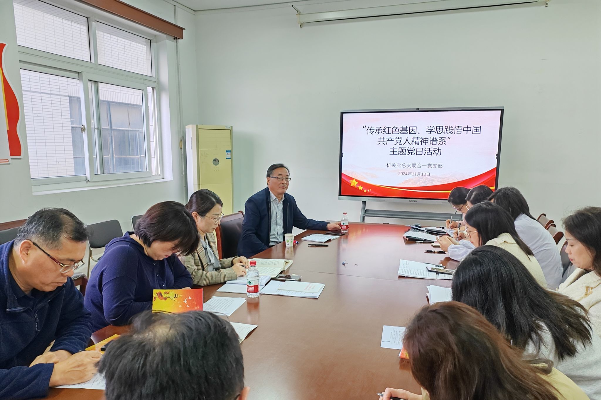 11月13日,联合一支部在崇实楼202室开展“传承红色基因,学思践悟中国共产党人精神谱系”主题党日活动。活动由支部书记储玲主持,党委副书记邓海龙和支部全体党员参加了活动。