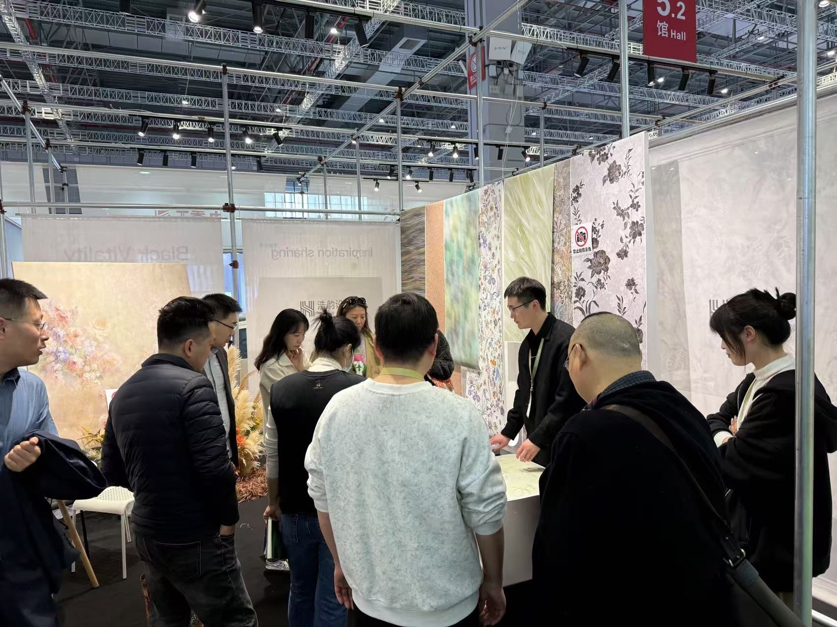 本次展会首次呈现了“设计廊”展区,汇聚了业内14家优秀设计企业。其中,10级校友王阳毕业之际所创办的浩韵设计,始终深耕于纺织品印花图案的研发与设计领域,坚守原创手绘的设计原则,倡导创意性、持续性的产品研发思路,确保每一款产品都独具特色,在本届展会上大放异彩,来参观交流、洽谈业务的客户络绎不绝,设计订单倍增。
