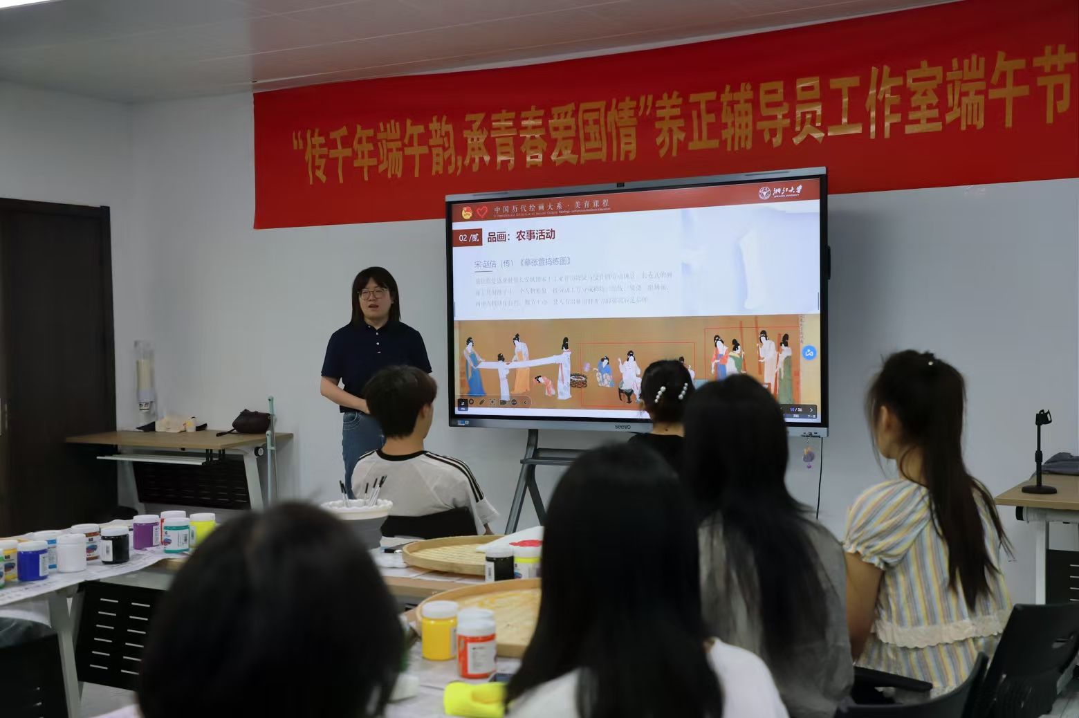 活动伊始,2024 年“中国历代绘画大系”全国大学生志愿宣讲活动优秀团队指导教师张晓霞为同学们梳理了农耕文化在艺术中的发展脉络。在其生动解读下,一幅幅历代农耕主题绘画充分展现出独特的智慧与美学价值,引领同学们沉浸于传统文化的深厚底蕴之中。