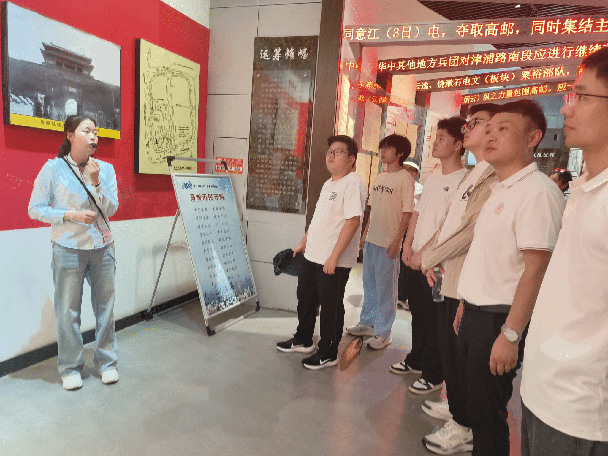 7月26日,实践团首站抵达高邮抗日战争最后一役纪念馆。这座铭刻着民族尊严的圣地,曾是新四军将士浴血奋战之处,也是侵华日军最终放下武器的受降地。馆内,战士的斑驳遗物、泛黄的历史影像、逼真的战斗场景复原,无声诉说着1945年寒冬那场气壮山河的决胜之战。尤为震撼的是缴获的日军装备与受降场景重现——日军在此签署降书,宣告了盘踞中国八年之久的侵略者彻底覆灭。硝烟虽逝,但民族危亡关头迸发的勇气与牺牲精神,如长鸣警钟,提醒青年一代珍视和平,以自强守护家国安宁。这是非常宝贵的抗战精神。