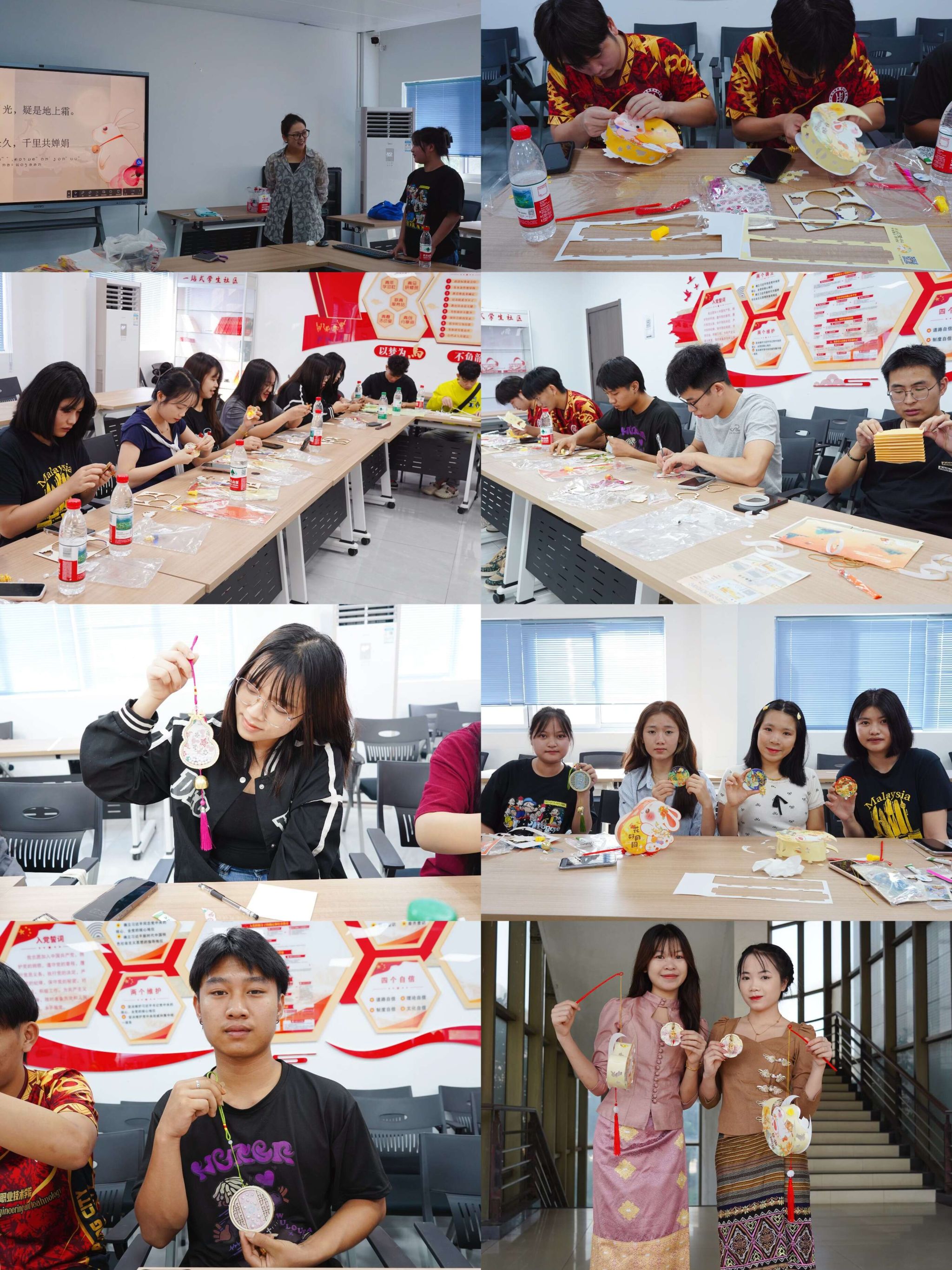 10月5日下午,崇川校区“一站式”学生社区内暖意融融,“巧手映月,共绘团圆”中老学生中秋手作日活动在此温馨启幕。学校国际合作交流中心主任吉利梅参加活动。智能制造学院老挝留学生与技能大赛备赛留校学生共同参与。