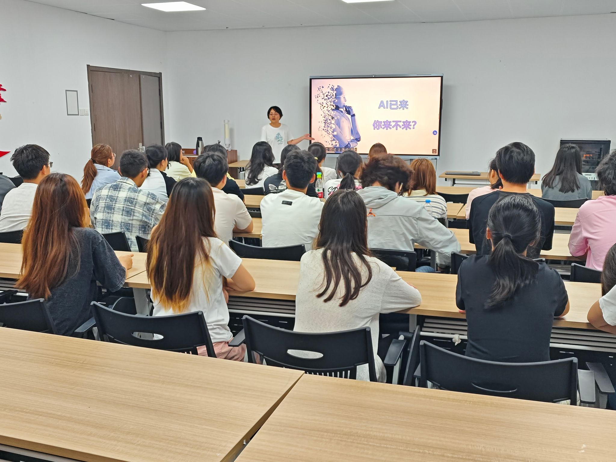 为积极回应人工智能时代对高等教育提出的新要求,推动智能技术与教育教学深度融合,10月13日上午,基础教学部在崇川校区一站式学生社区举办“AI已来,你来不来?”主题讲座。基础教学部尤鸿霞老师作专题辅导。