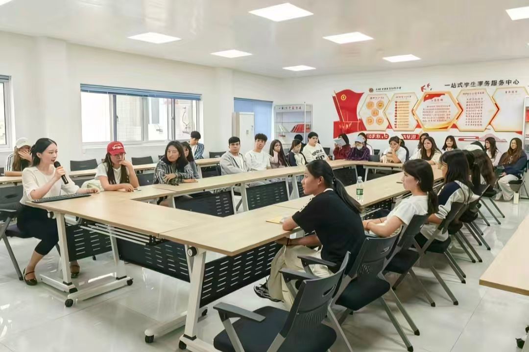 为积极响应第28届全国推广普通话宣传周的号召,助力少数民族学生提升普通话应用与应试能力,10月15日下午,一场以《提升“言”值,“语”众不同》为主题的普通话专题讲座在崇川校区一站式服务中心举行。本次活动由基础教学部应用汉语教研室主任夏蕾主讲,崇川校区五十多名少数民族学生积极报名参与。
