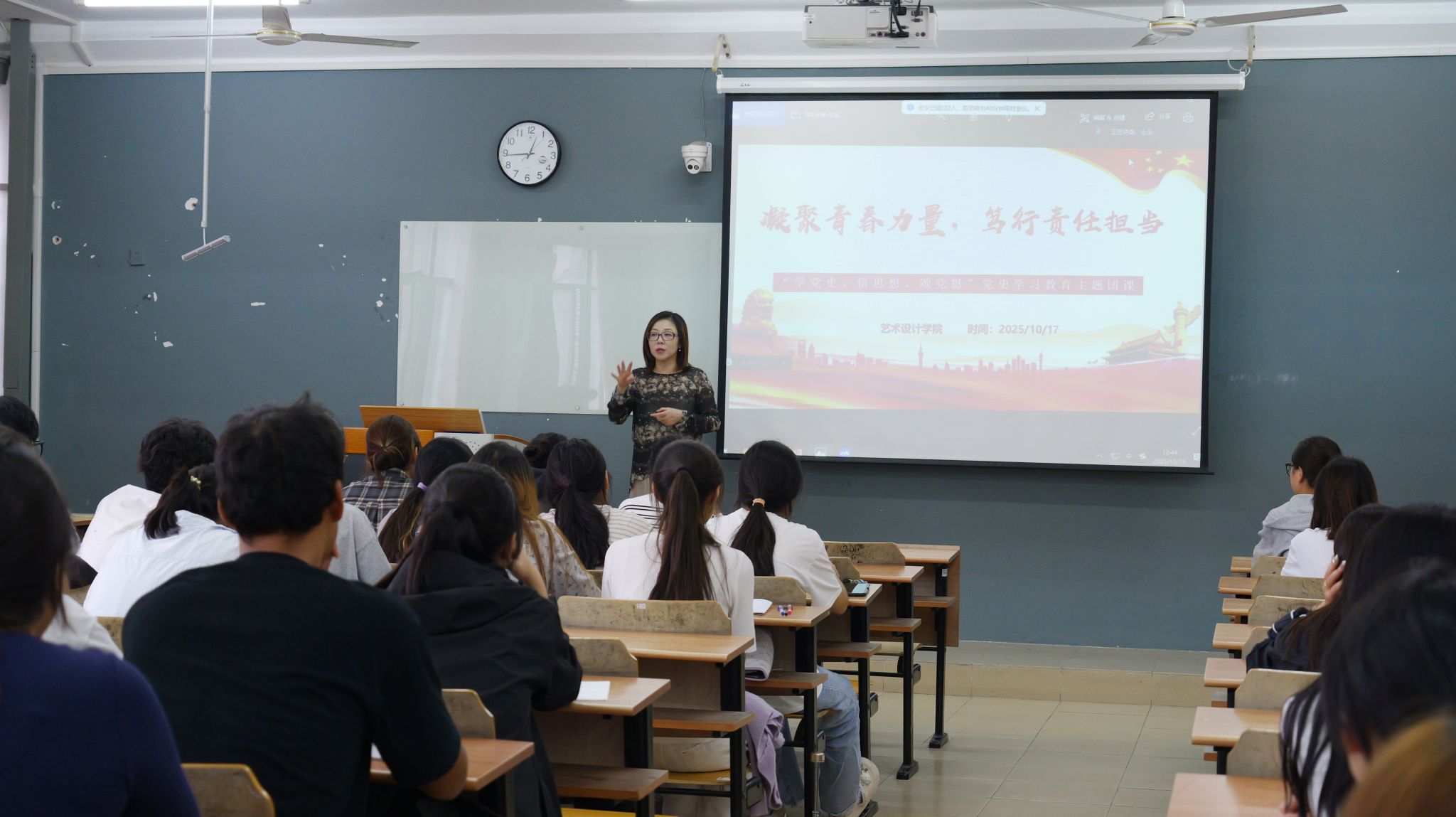 为深入推进党史学习教育,引导广大团员青年从党的光辉历程中汲取精神滋养,激发奋进动力,坚定理想信念,10月17日,艺术设计学院举办了以“凝聚青春力量,笃行责任担当”为主题的党史学习教育主题团课。艺术设计学院党总支书记彭曼担任主讲,全体入团积极分子参加。
