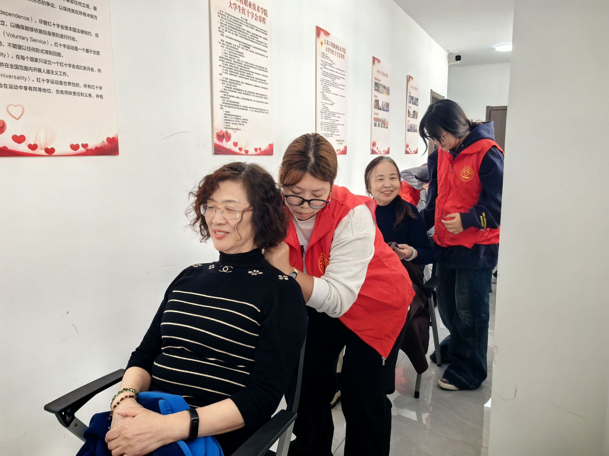 活动伊始,经济管理学院智慧健康养老服务与管理专业的学生为离退休老教师们细致测量血压、解答健康疑问,或轻揉肩颈、腰背,为老人舒缓疲劳,或耐心为他们介绍秋季养生知识,老同志们纷纷对同学们的专业服务竖起了大拇指。