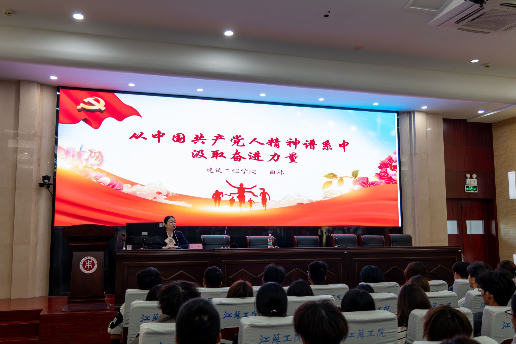 白林以《从中国共产党人精神谱系中汲取奋进力量》为题讲授专题党课。她结合党史中的重大事件与典型人物,生动讲述了中国共产党人精神谱系的丰富内涵,勉励新生团员从共产党人精神谱系中汲取前行力量,在今后学习与工作中践行“强国有我”的青春誓言。