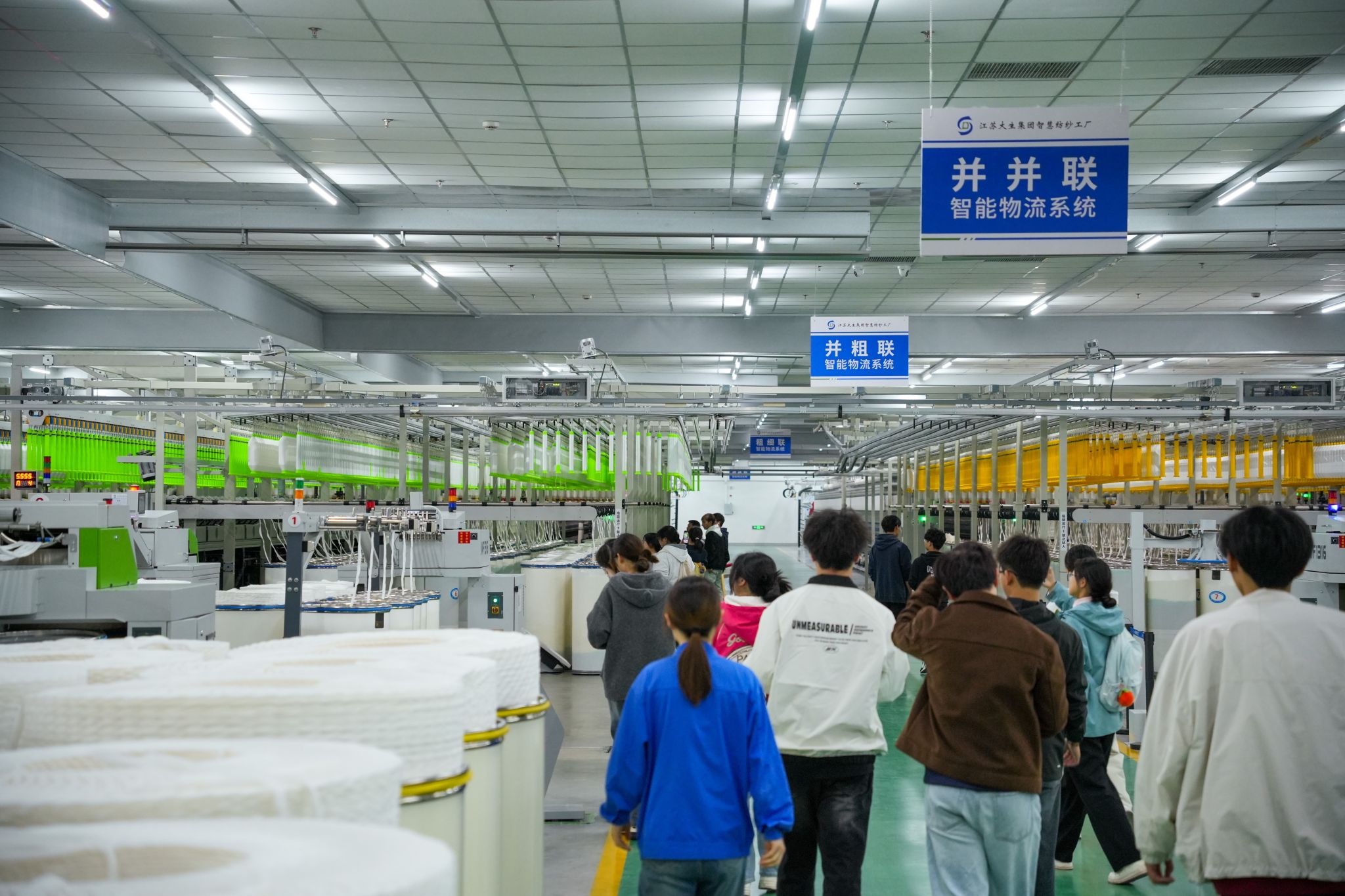 随后,师生步入全球领先的大生智慧纺纱工厂,高度自动化的生产场景让课本知识变得可视、可感。这不仅是前沿技术的展示,更是一堂由校企双方共同打造的“产教融合现场课”。同学们直观了解到现代纺织工业的科技内涵与发展趋势,学校与合作企业也更清晰地认识到,未来产业亟需的是立足校企合作平台培养的、既懂传统工艺又掌握数字技能的复合型人才。