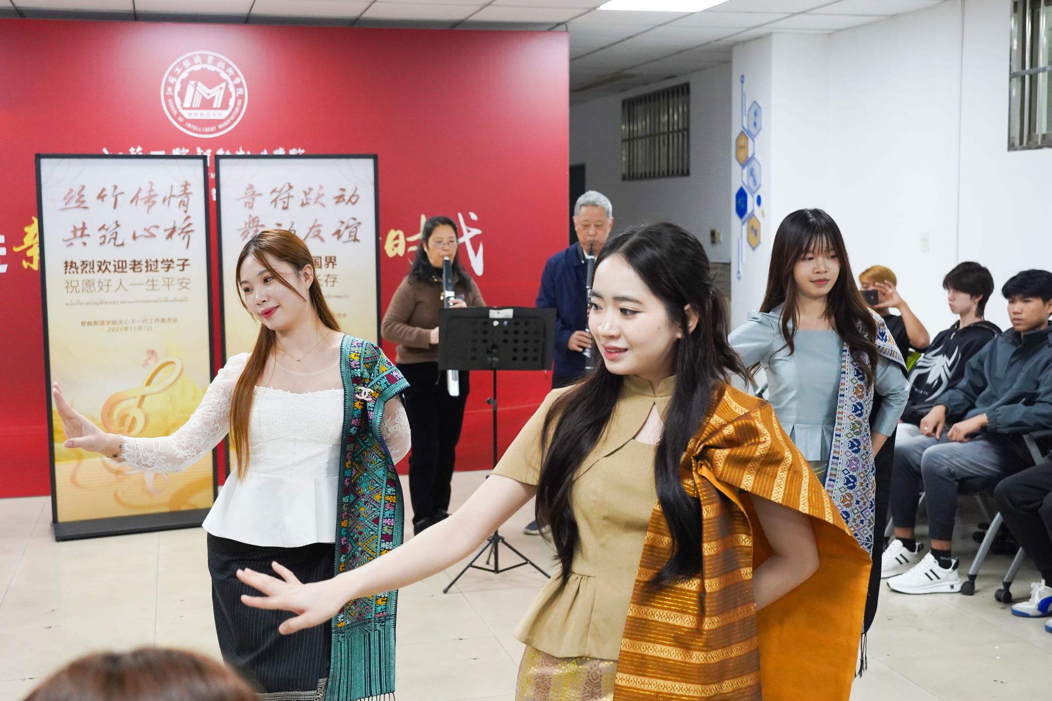 活动现场,气氛温馨而热烈。学院关工委的老教师孙凤鸣、茅志玉满怀深情,用电吹管为远道而来的学子们演奏了《好人一生平安》《月光下的凤尾竹》等中外名曲。悠扬的旋律,尤其是那首极具东南亚风情的《月光下的凤尾竹》,瞬间拉近了彼此的距离,勾起了留学生们对故乡的亲切回忆。深受感染的留学生们也纷纷即兴登场,或随乐声翩然起舞,或一展歌喉,用他们自己的方式表达内心的喜悦与感谢。现场欢声笑语不断,中外师生欢聚一堂,用中文亲切交流,其乐融融,充分展现了文化交流的亲和力与感染力。学院相关领导、留学生班主任一同参加了此次活动。