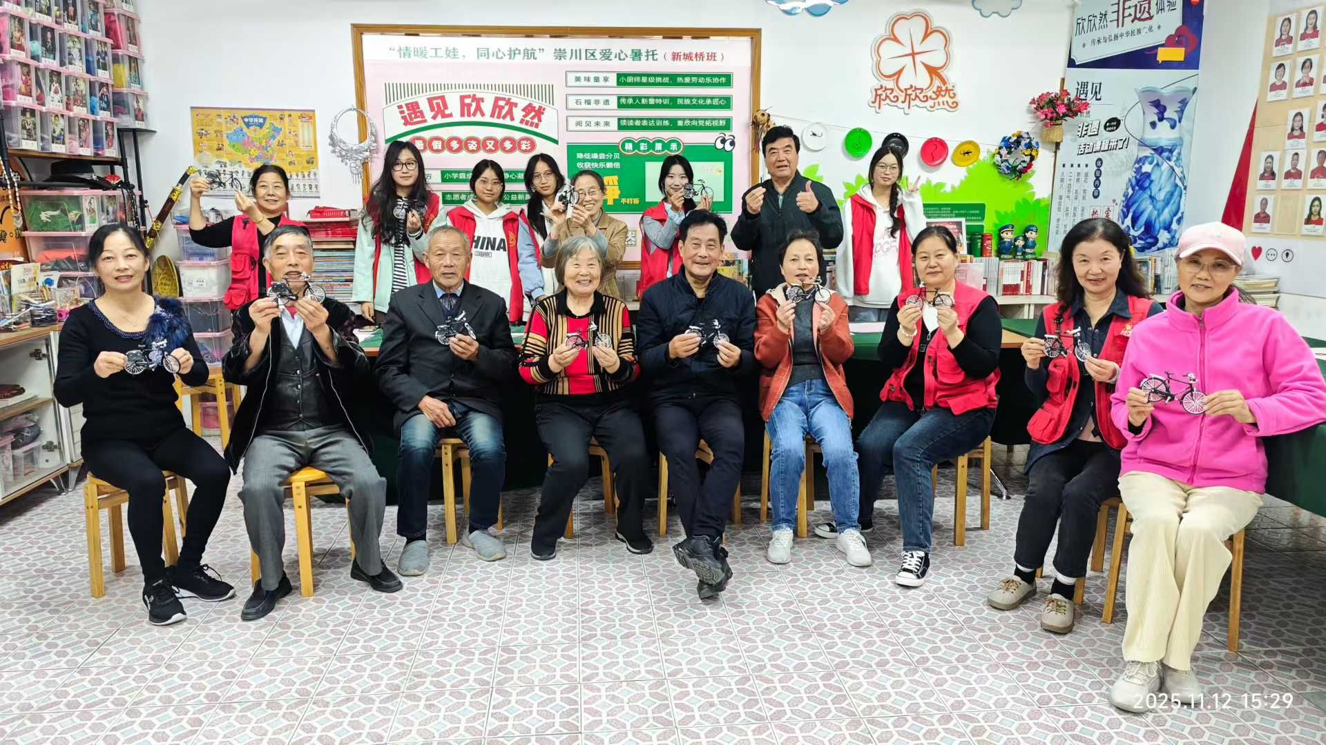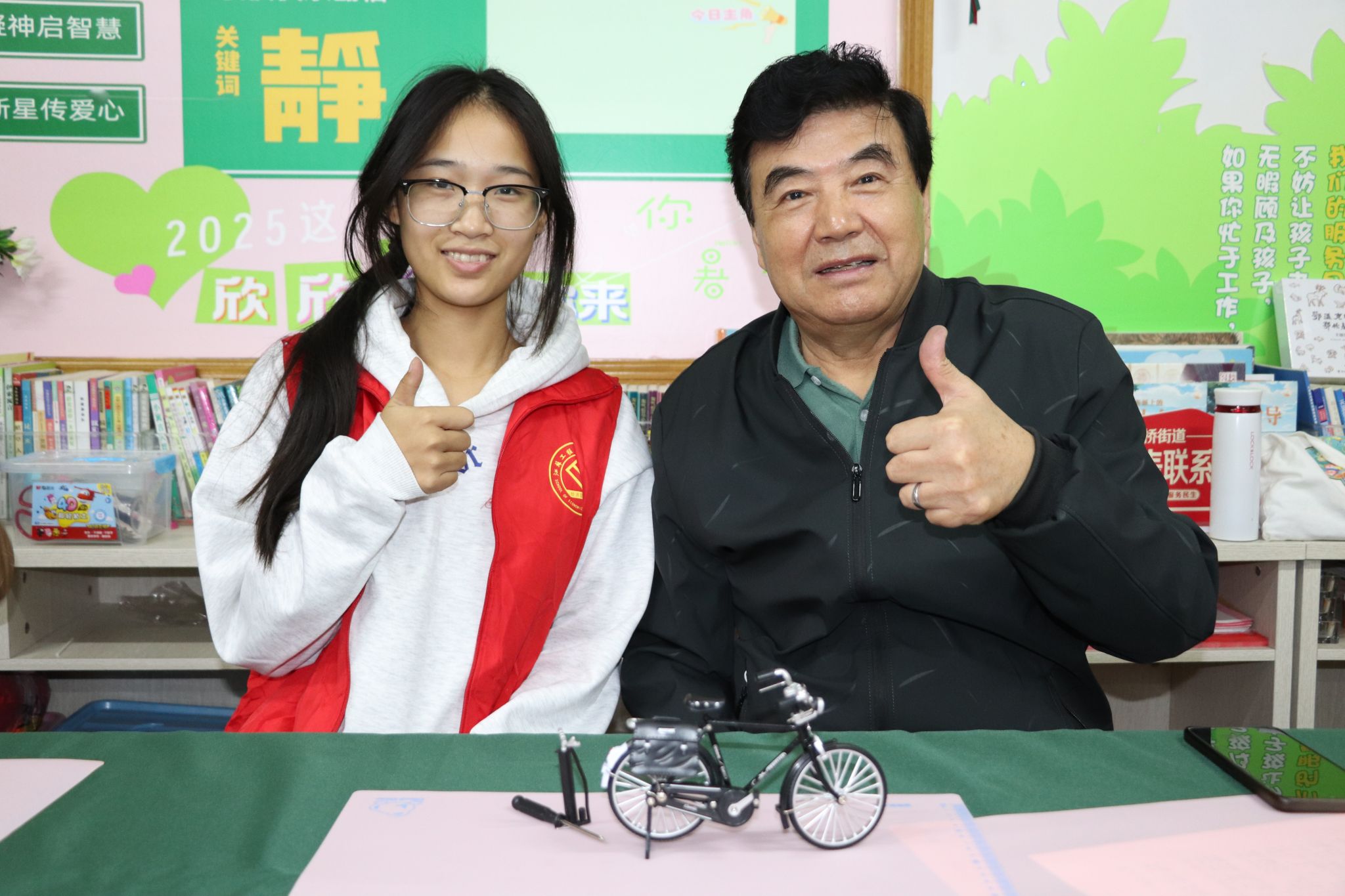 在“我的时代记忆”分享环节,劳模们手持自己组装的模型,轮流走上前讲述故事:有人回忆起骑自行车跑遍街巷服务群众的经历,有人说起用自行车驮着患病同事去医院的温暖往事,还有人感慨 “二八大杠见证了我们这代人的青春与奋斗”。大学生志愿者们听得格外认真。志愿者小雨听完后感慨道:“以前总觉得‘奋斗’是个抽象的词,今天听了爷爷奶奶的故事才明白,奋斗就是日复一日的坚持,就是骑着二八大杠迎风前行的勇气,我们以后也要像你们一样,踏实努力!”