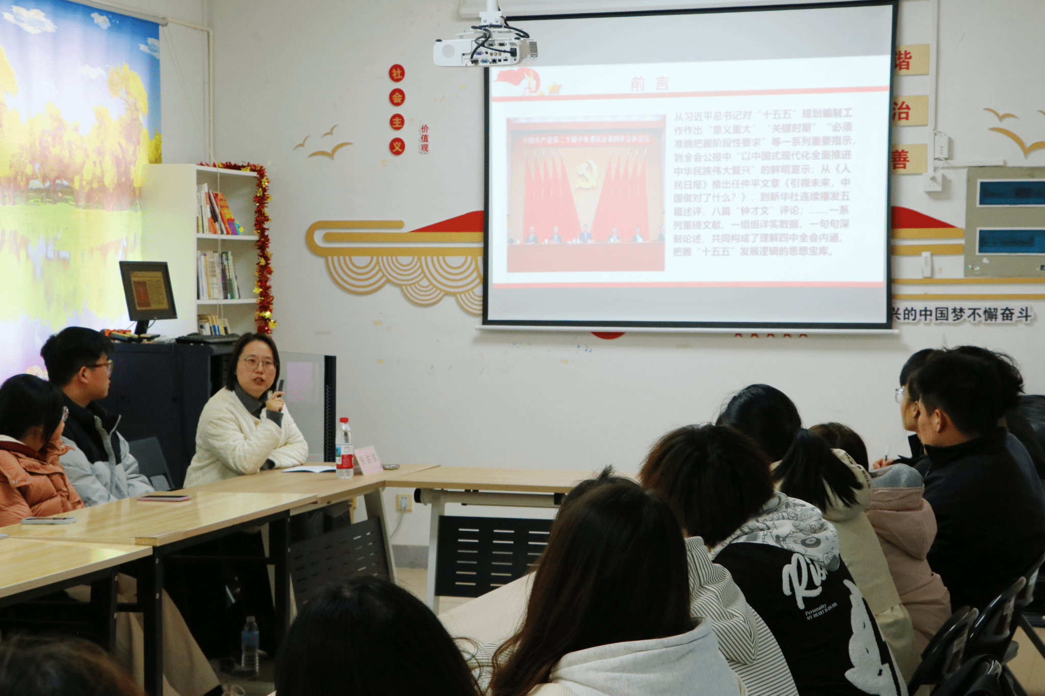 张甜甜以《锚定“十五五”擘画新蓝图——学习贯彻党的二十届四中全会精神》为题,围绕全会精神的核心要义,结合国家发展蓝图与青年使命担当,引导学生干部深刻领会国家未来发展的战略部署,鼓励大家将个人成长融入国家发展大局。