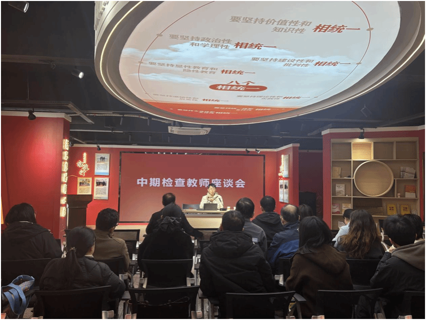 为强化教学质量监控,营造良好教风学风,马克思主义学院于近日在践悟馆结合期中教学检查工作,组织召开了教师座谈会。会议由挂职副院长季晨主持,全体思政教师参会。