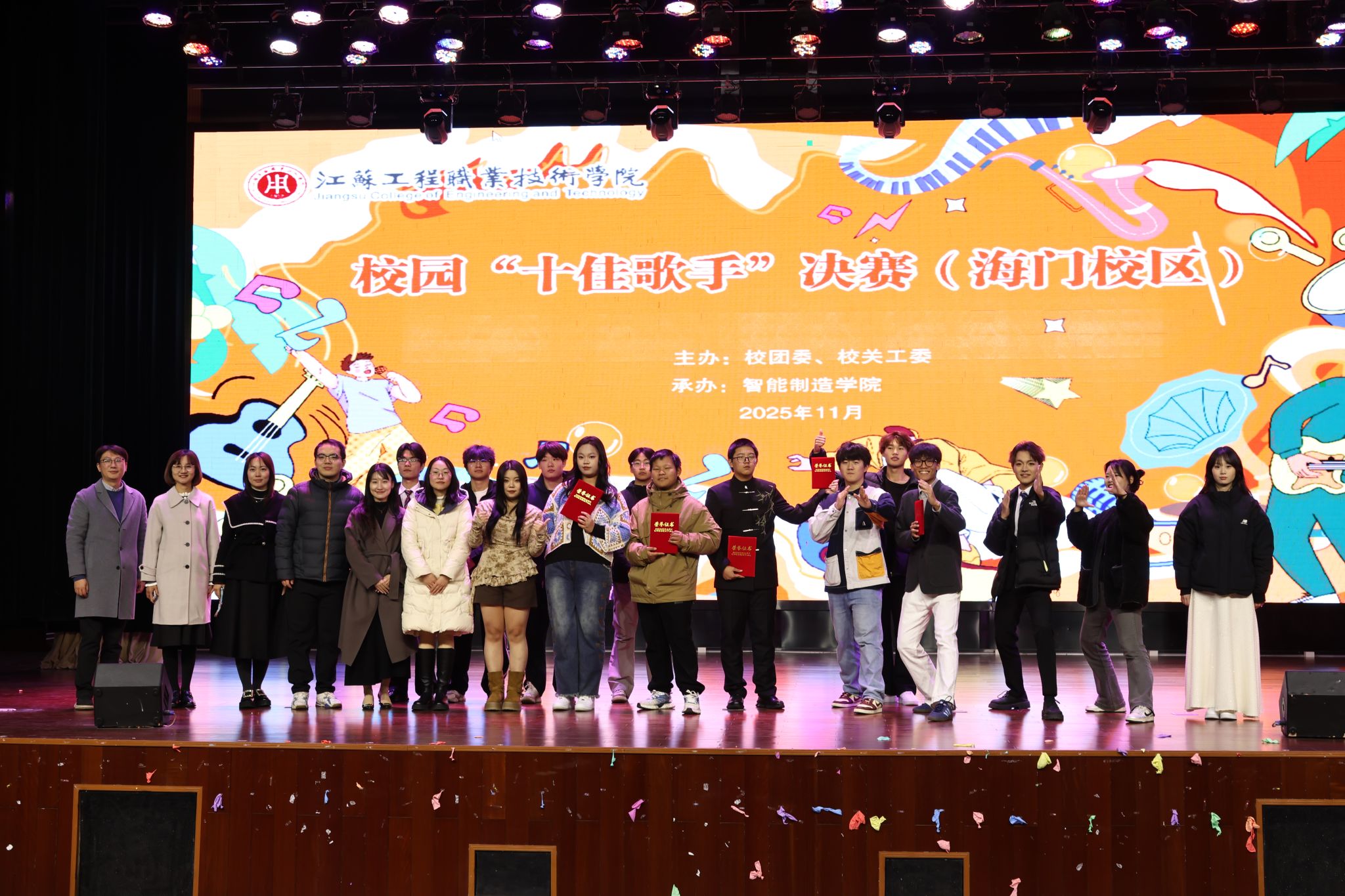 11月19日,由校团委、校关工委主办,智能制造学院承办的校“十佳”歌手决赛(海门校区)上演。校团委副书记沈雯、张禧嘉,党政办公室秘书科科长徐希亮、校学生社区管理服务中心钱琨、纺织服装学院辅导员陈筱洁担任评委,智能制造学院党总支副书记保慧与海门校区近800名学生代表共同参与本次活动。