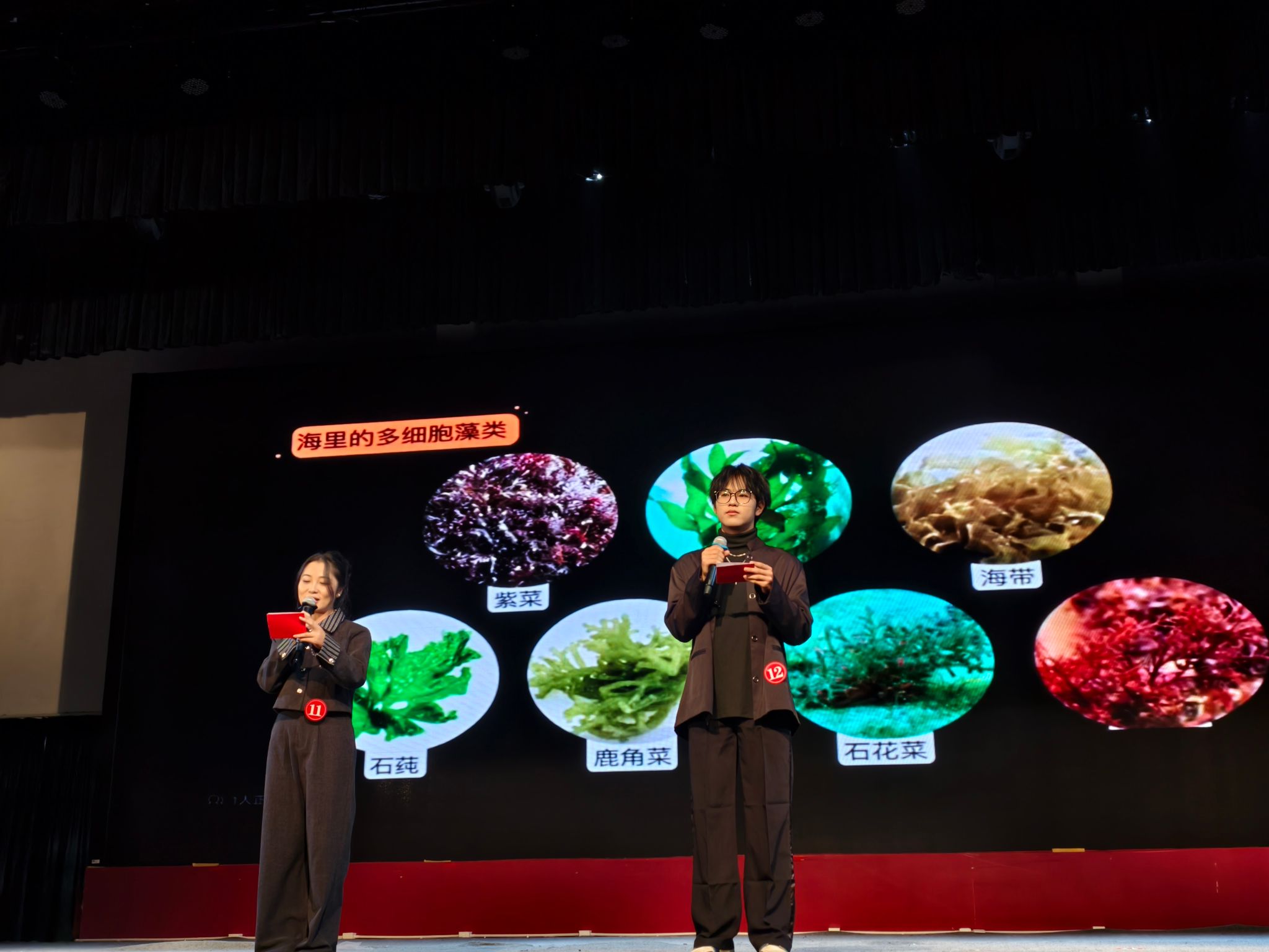 经过激烈角逐,共有12名选手脱颖而出,站上了校赛的舞台。校赛分为情境主持、模拟配音两个环节,既考验选手的表达能力和思维能力,也考验选手合理利用声音、语气、语调、肢体以及表情进行现场配音和演绎的能力。经过激烈的角逐,最终25电商四刘文钊荣获冠军,25纺织(大生)徐赵荣获亚军,25纺工四徐黄倩荣获季军,朱梓梦、孙玮苒、郁璐宇、田启薇、刘爽、林姝、隽佳怡获“校十佳主持人”称号。
