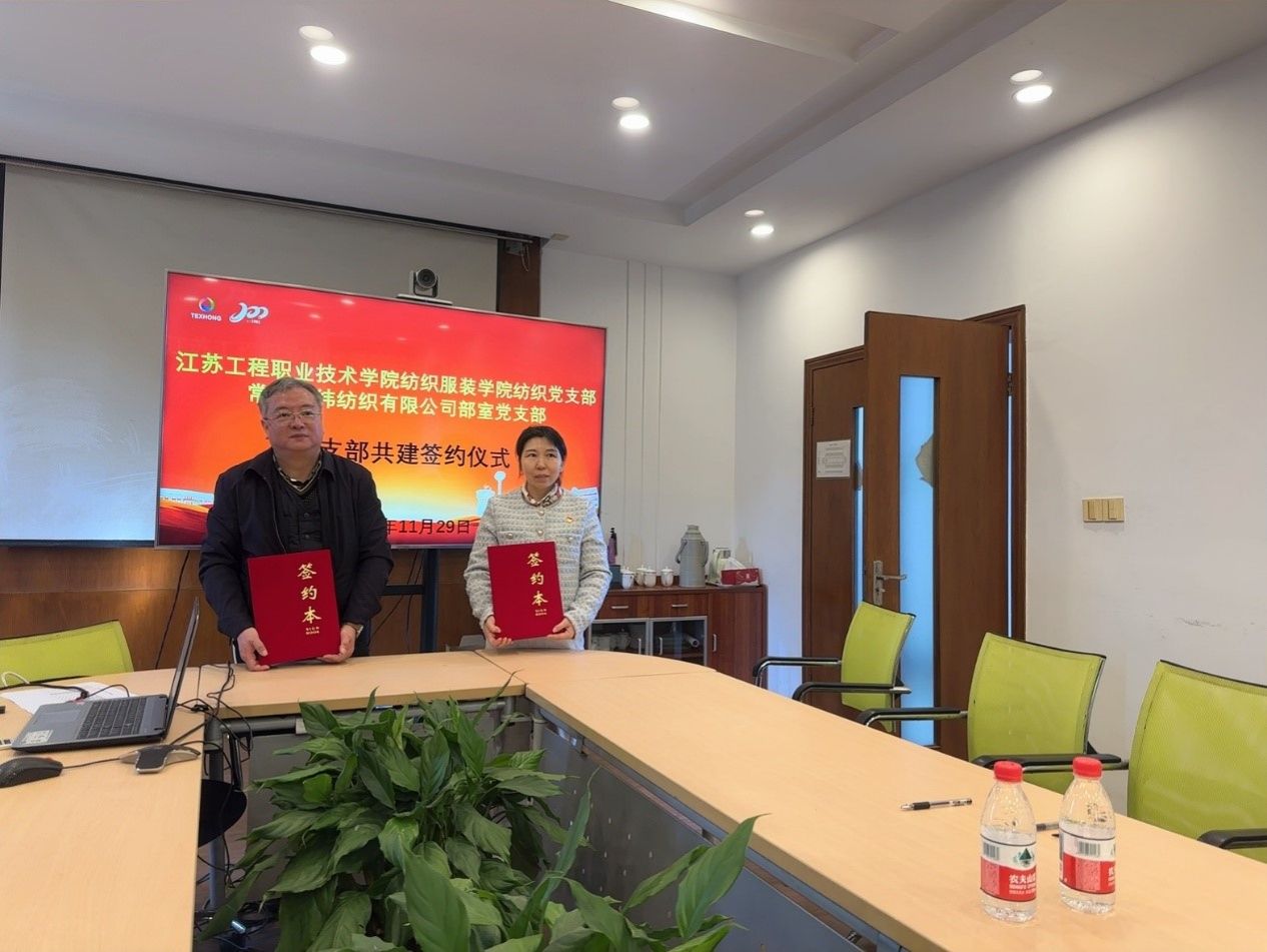 纺织党支部书记隋全侠与常州虹纬纺织有限公司部室党支部书记沈桥庆签订了支部党建共建协议。双方表示,将以党建引领为保障,以高质量发展为导向,以资源共享为主线,以合作共赢为宗旨,发挥博士、教授科技攻坚团队作用,在课程思政、人才培养、科技攻坚、产教融合等方面开展深度交流合作,持续开展一批产学研合作项目,推进校企合作共赢。