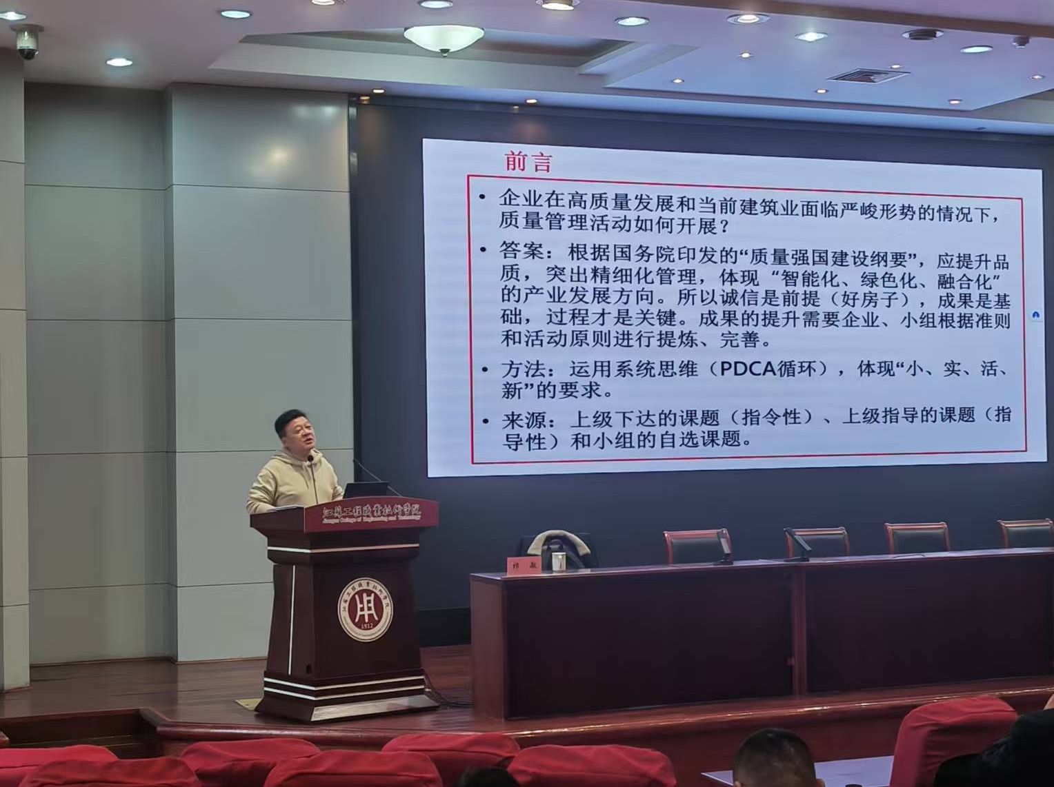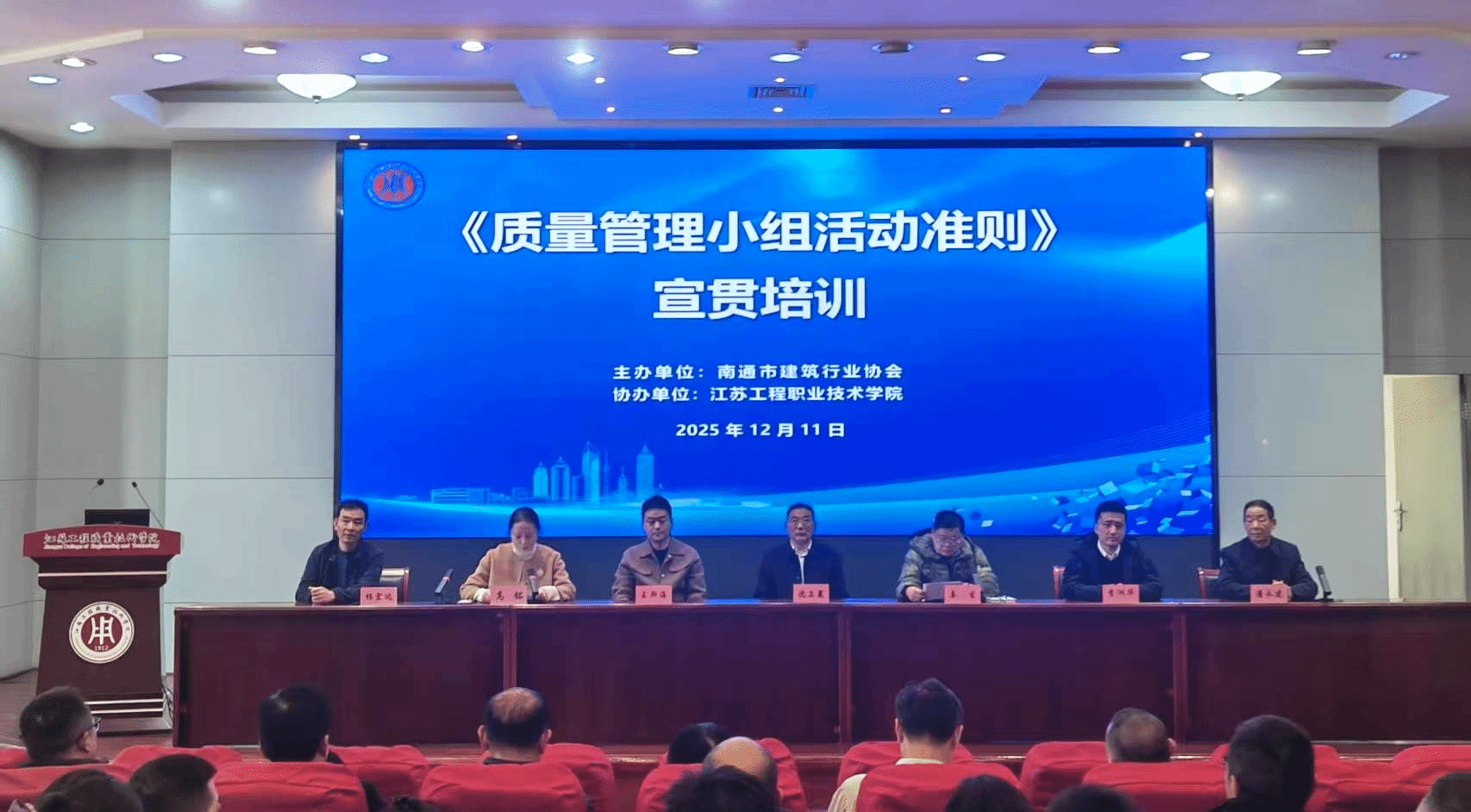 12月11日,由南通市建筑行业协会主办、我校承办的《质量管理小组活动准则》(T/CAQ10201-2024)专题宣贯培训在致知楼报告厅举行。南通市建筑行业协会会长沈卫星、秘书长高铭,继续教育学院院长姜生,建筑与交通工程学院院长王斯海出席活动,全市建筑施工企业总(副)工程师、项目经理、技术质量负责人及QC小组成员共220余人参加培训。培训由高铭主持,姜生致欢迎辞。