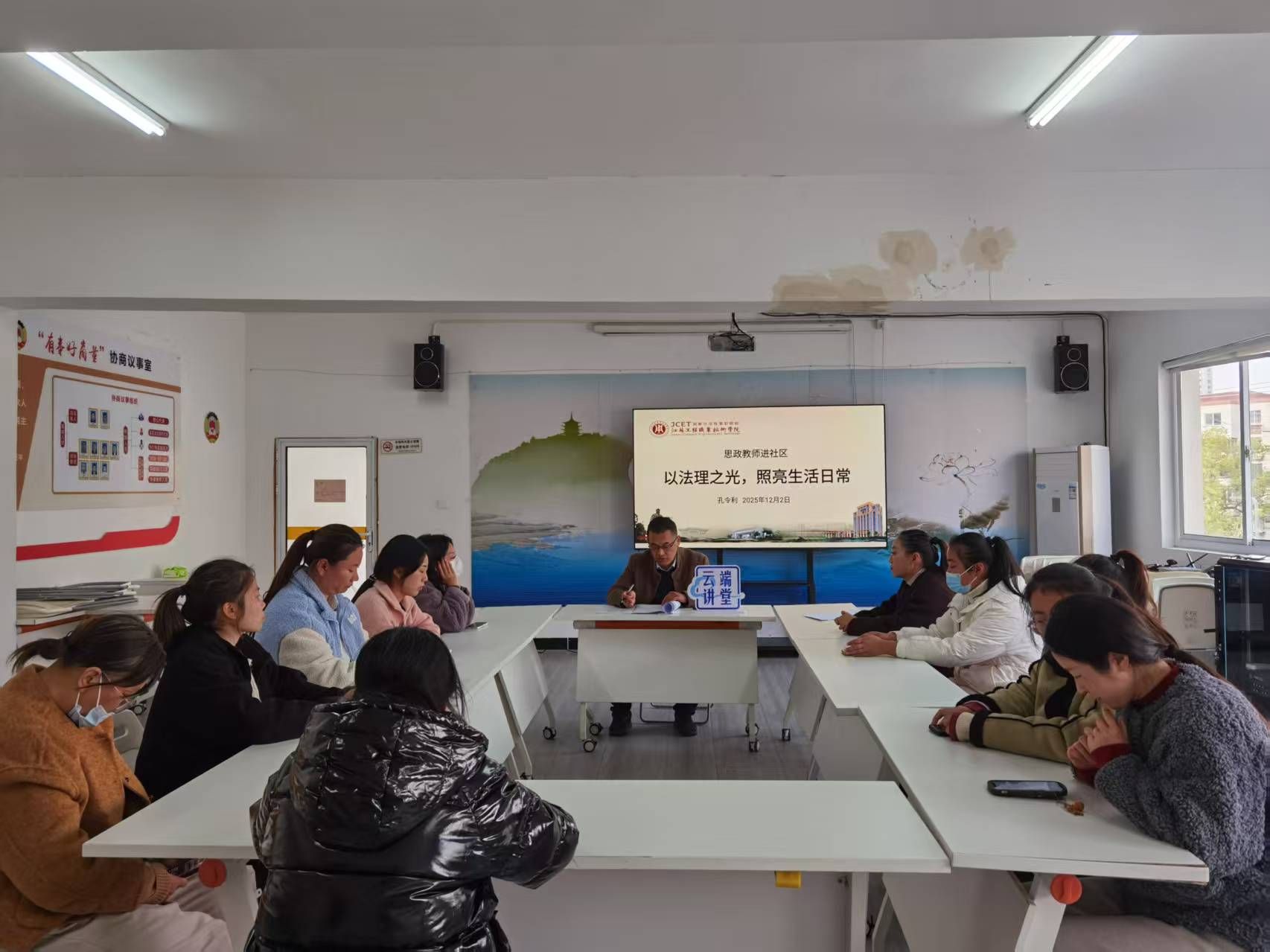 学院充分发挥法学专业师资与思政教育双重优势,启动“思政教师进社区”专项普法行动。孔令利老师深入果园社区,开展以“以法理之光,照亮日常生活”为主题的宪法宣讲。宣讲聚焦邻里关系、物业服务、老年权益等社区常见法律问题,通过案例化、生活化的讲解,引导居民依法化解矛盾、维护权益,推动法治思维在基层扎根,为社区治理注入专业法治动能。