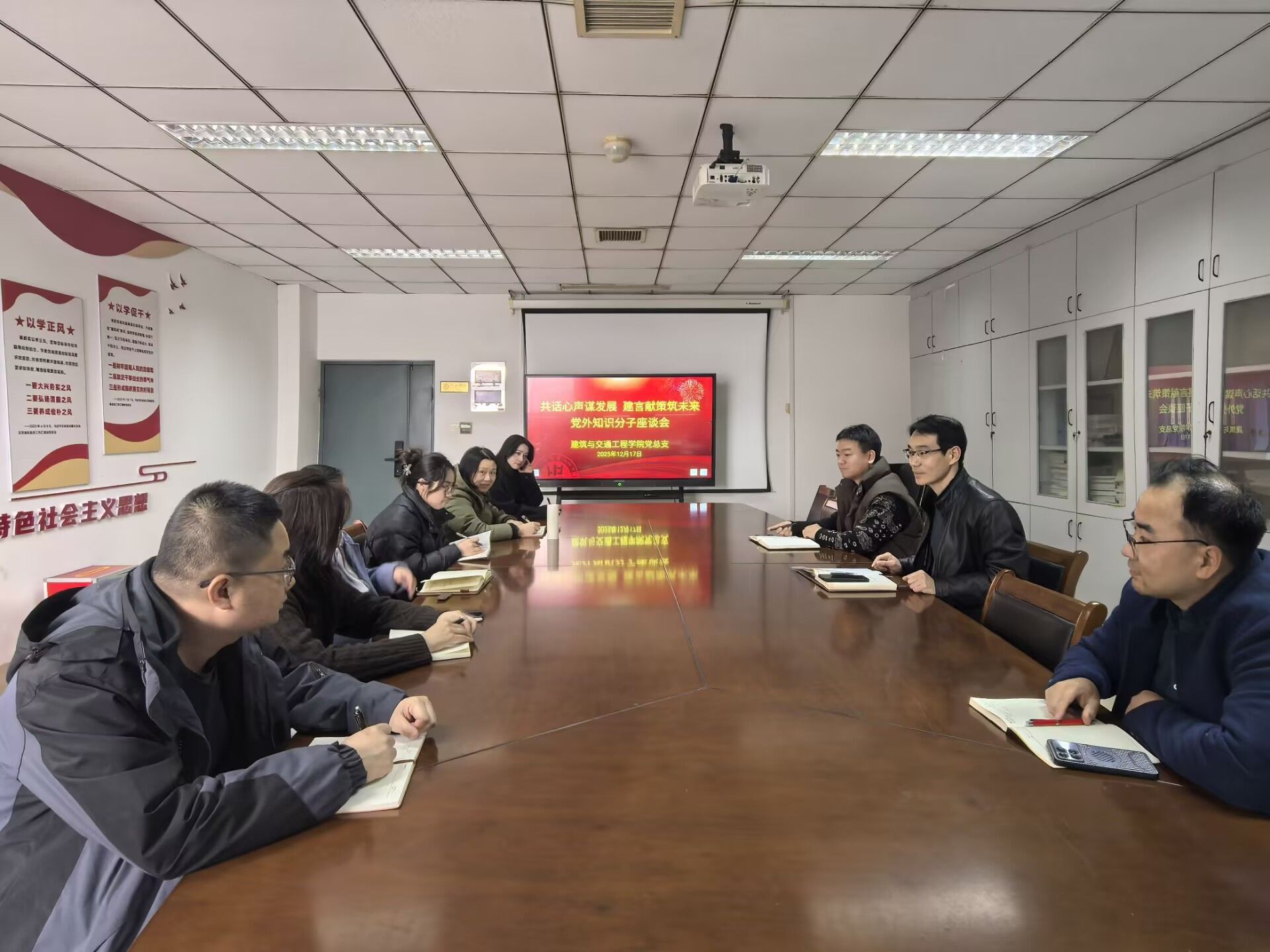 12月17日,建筑与交通工程学院党总支以“共话心声谋发展 建言献策筑未来”为主题召开党外知识分子座谈会。建筑与交通工程学院院长、党总支统战委员王斯海,学院全体党外知识分子参加座谈会,会议由学院党总支书记曹钰主持。