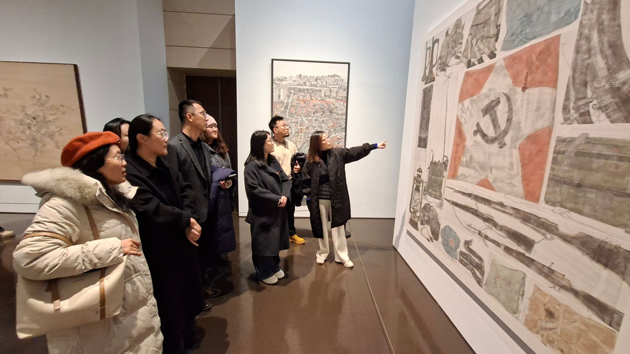 次日下午,党员教师们先后参观上海世博展览馆与中华艺术宫。数字与创意设计学院党总支副书记李楠以“以美铸魂,向光而行”为题分享美育微党课。他结合大展中的优秀作品,分享如何通过艺术形式传递红色精神。在红色主题画作展区,马克思主义学院党总支书记彭曼结合思政视角,为大家解读艺术作品中的红色基因与时代内涵。数字与创意设计学院党总支书记赵喜恒则从艺术创作手法、美学表达角度展开分析,双方围绕艺术作品中的思政元素挖掘展开深入探讨。