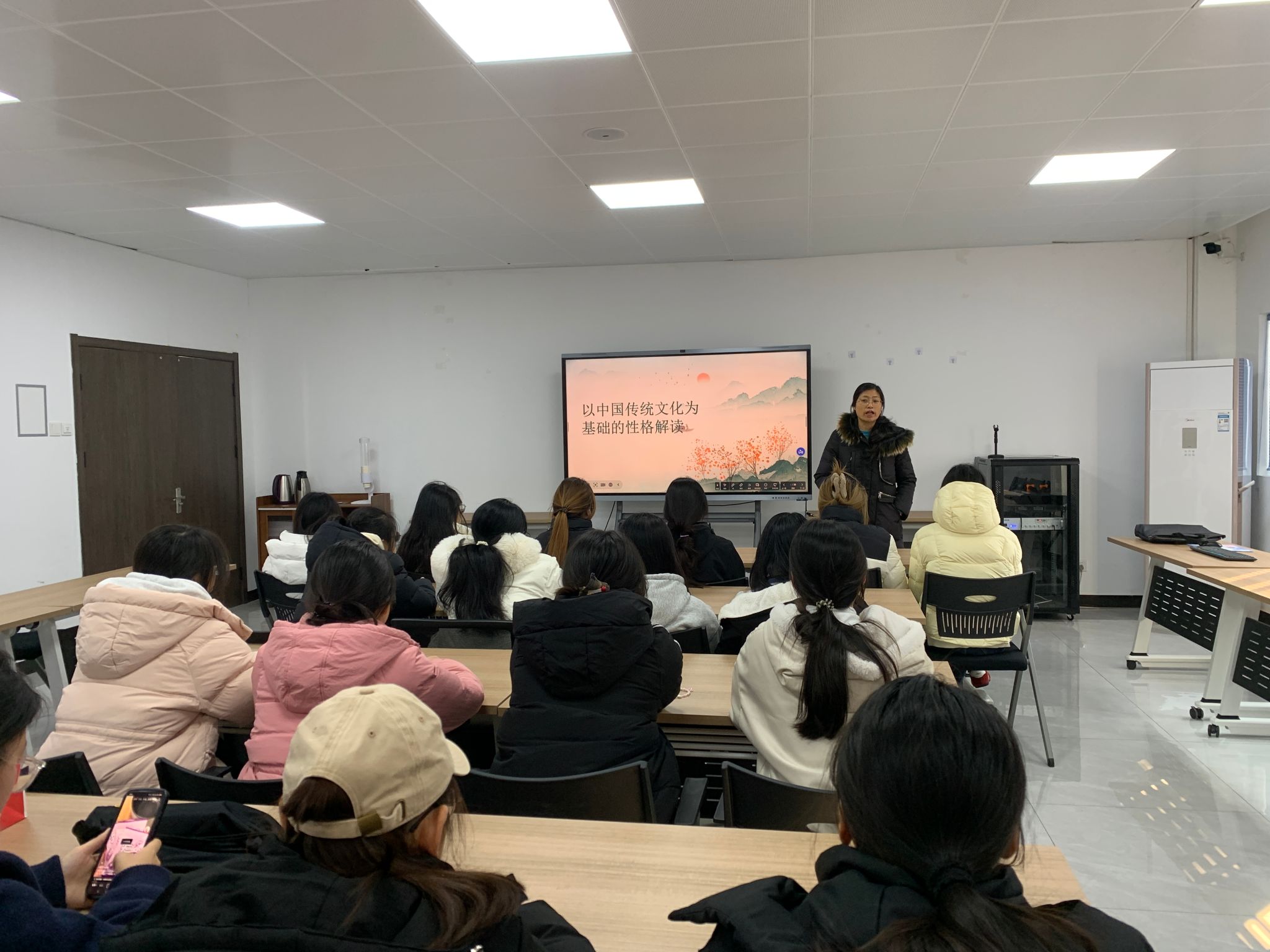 本次讲座邀请学院关工委老教师周群娣主讲。围绕中国古典哲学思想中蕴含的为人处世之道,以金、木、水、火、土为脉络,逐一拆解其特质与不同性格类型之间的生动关联。金的刚毅与原则,木的成长与仁爱,水的智慧与变通,火的热情与表现,土的厚重与诚信……原本抽象古老的哲学概念,在周老师生动的比喻和贴近生活的实例中,变得清晰可感。