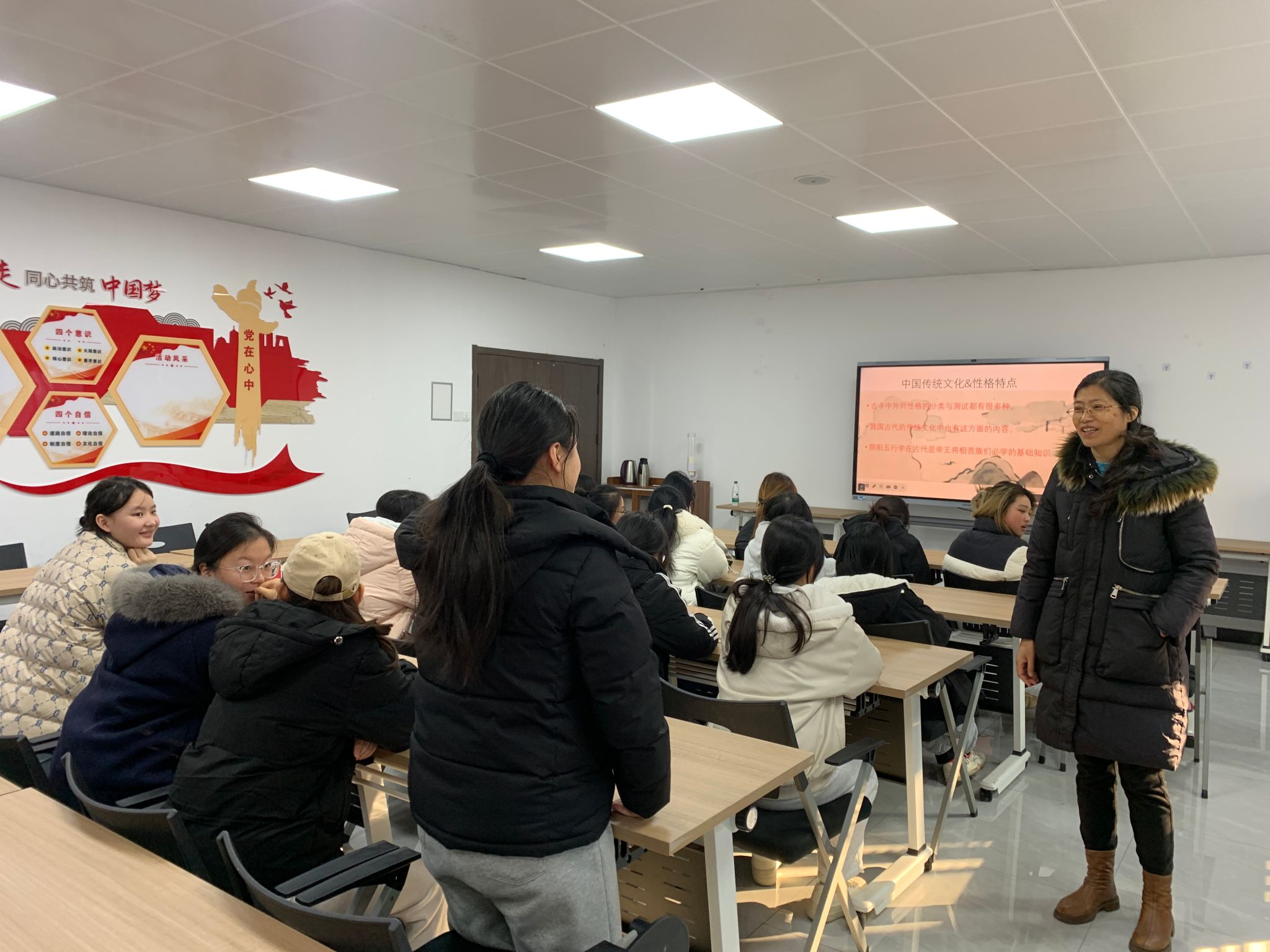 现场气氛活跃,周老师频频与台下同学互动,引导大家思考自身特质。同学们积极分享自己的理解与困惑,纷纷表示,这种从传统文化视角反观自我性格的方式非常新颖。讲座在热烈的氛围中圆满结束,也为同学们打开了一扇通往传统文化智慧与性格探索的崭新大门。(数字与创意设计学院 高扬/文图 蔡媛媛/推荐 赵喜恒/审核)