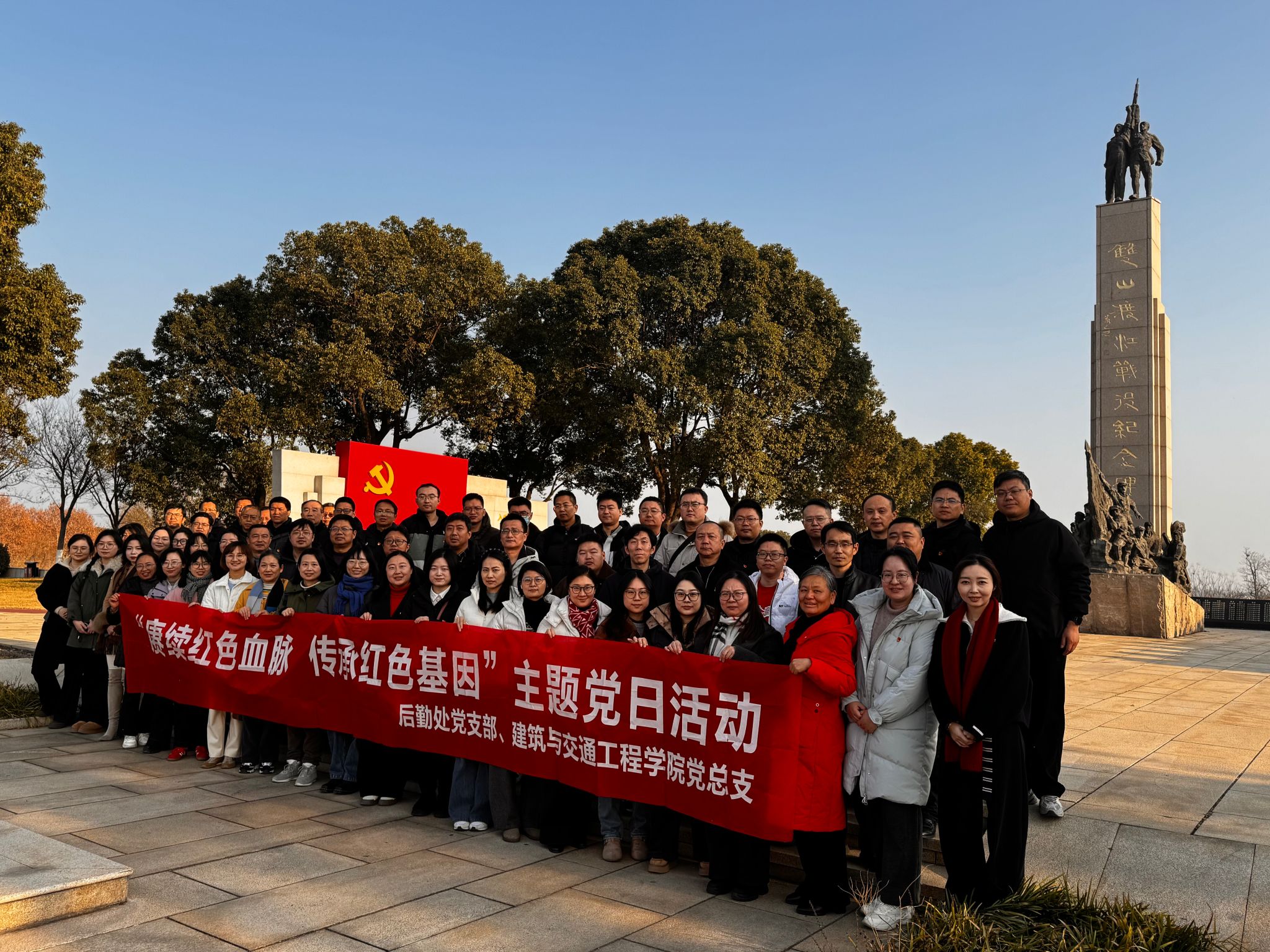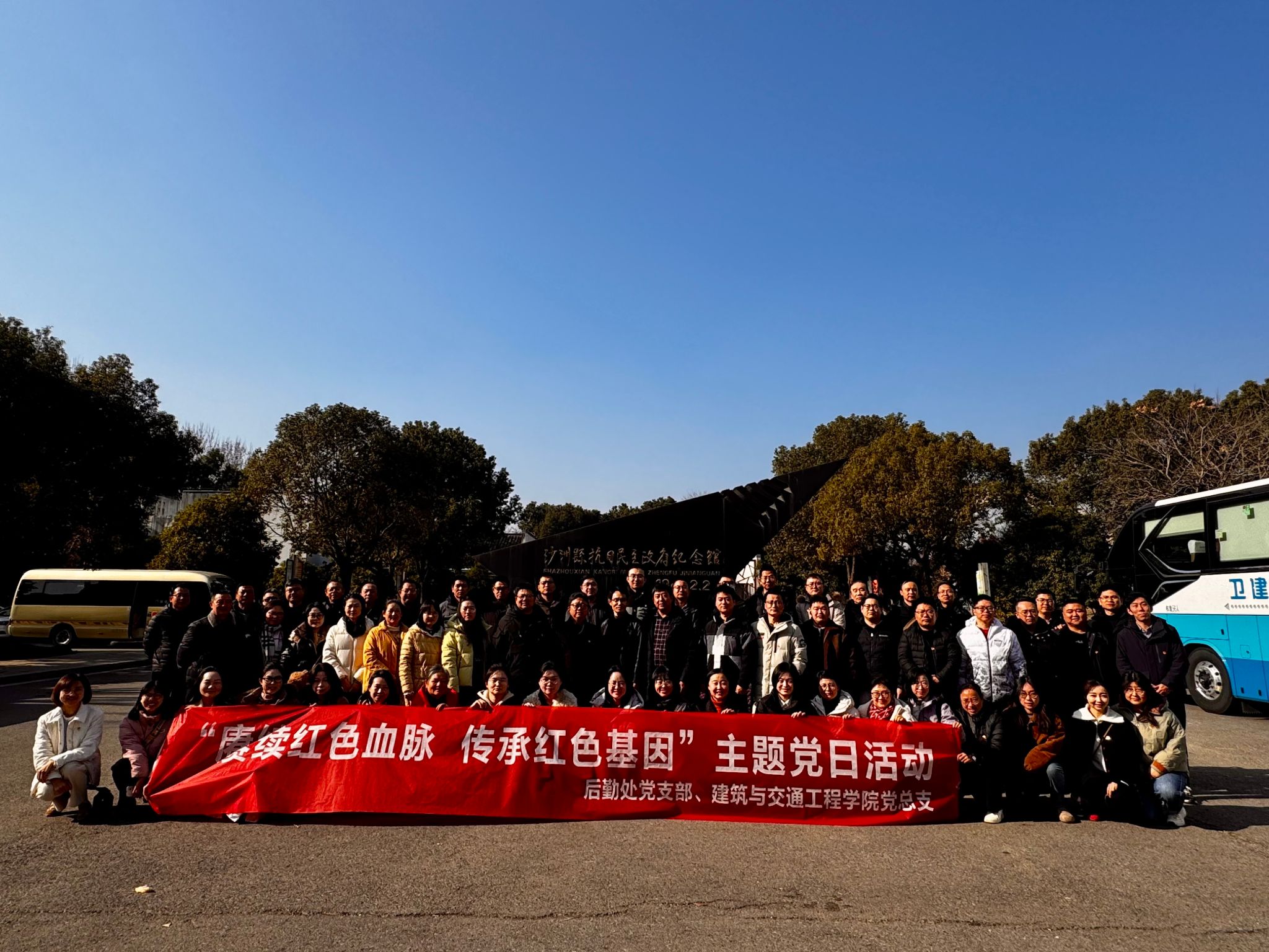 12月28日,建筑与交通工程学院党总支和后勤处党支部组织教师党员、党外知识分子前往张家港市,开展“赓续红色血脉 传承红色基因”主题党日活动。