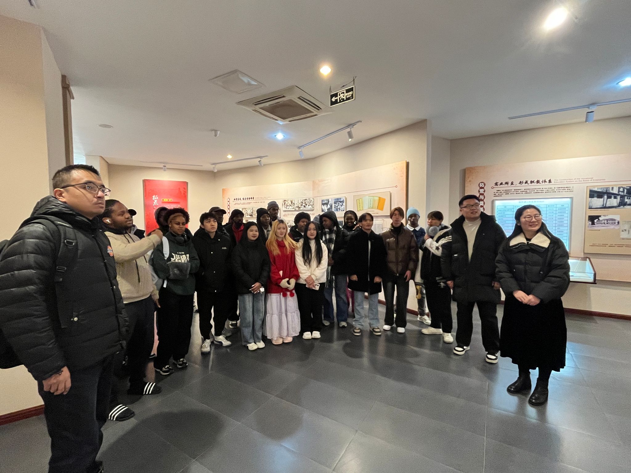 1月27日下午,来自老挝、南非的25名留学生共同参观了学校文博馆。通过丰富的图文史料、珍贵实物陈列与双语讲解,让学生们系统了解了学校深厚的办学历史与教育传承。
