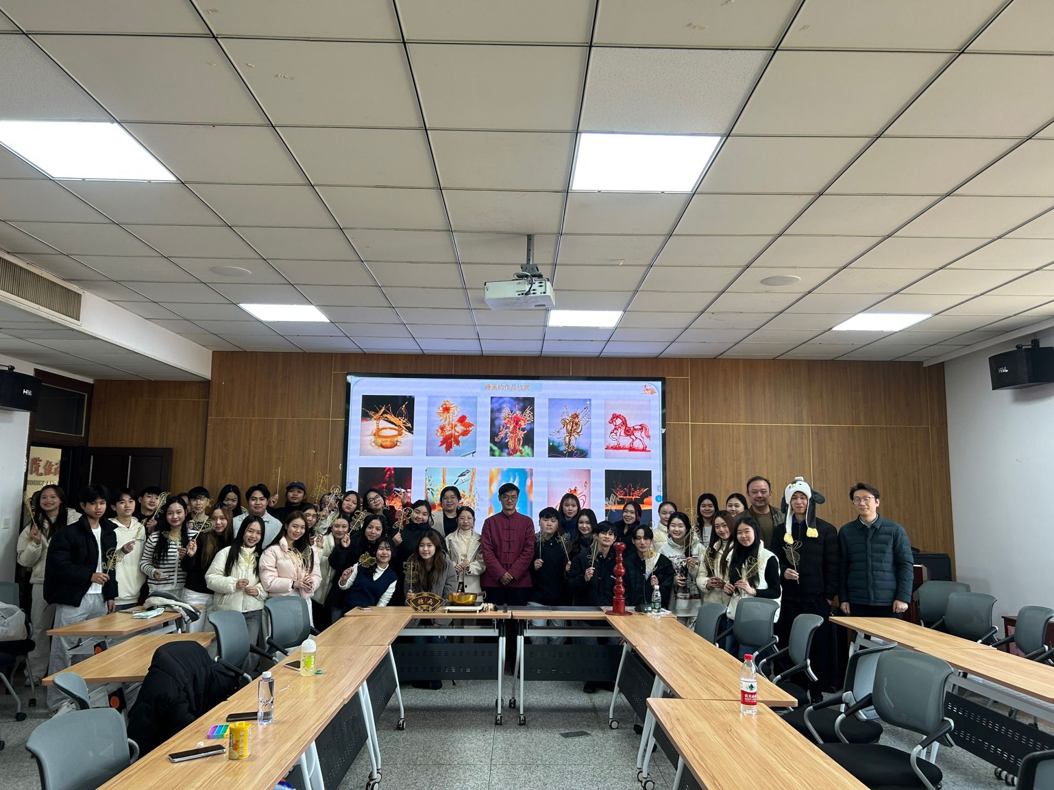 2月3日立春前夕,经济管理学院在致知楼604教室举办“糖丝连中老,画韵迎立春”非遗糖画文化宣讲与体验活动。活动特别邀请南通市级非物质文化遗产糖画项目传承人施剑锋老师主讲,学院党总支书记钱晋、党总支副书记沈峻锋、留学生班主任与全体留校老挝学生共同参与。