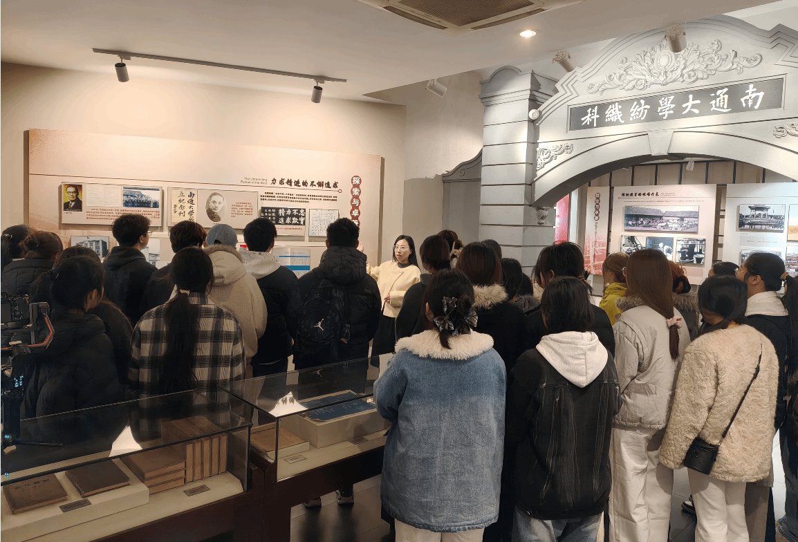教学环节中,辅导员许照绮结合馆内实物档案,详细讲解了学校1912年建校背景及先校长张謇创办大生纱厂的历史进程。随后,她聚焦南通家纺产业演变,剖析了行业从传统制造向现代智造的转型路径。通过专业解读,指导学生明确家纺专业在新时代的行业定位与核心技能要求,让开学第一课既有历史的厚度,又有专业的深度。