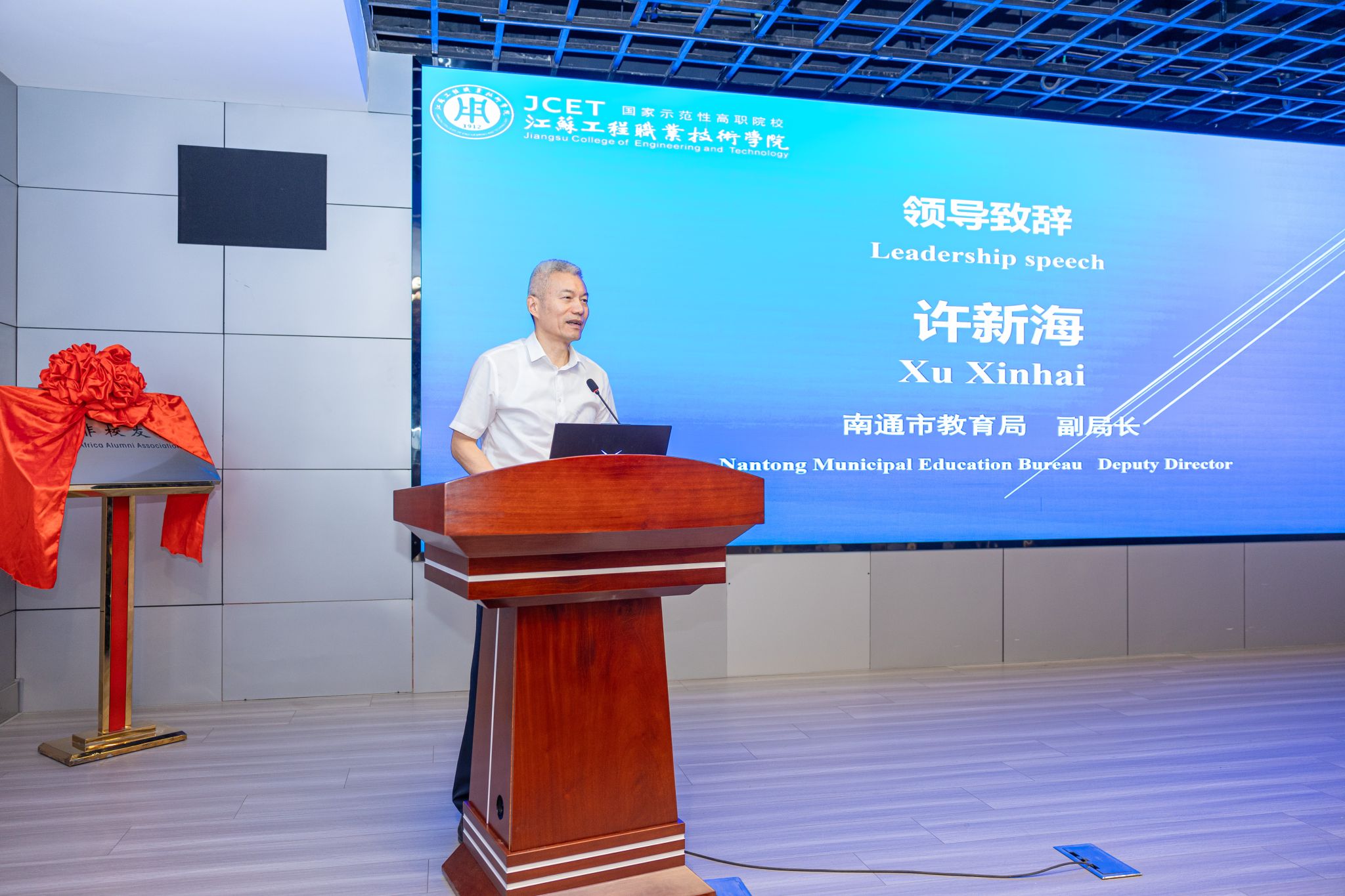 校长张忠在欢迎辞中系统介绍学校发展历程和产教融合成果,强调了联盟在推动新能源技术标准化、国际化人才培养中的核心作用。南通市教育局副局长许新海高度评价我校“政—校—企”三方联动出海培养模式,提出要进一步对接“中国标准”与“南非需求”。 姆福·吉夫特·穆卡表示,中国可再生能源技术和学校新能源装备技术教学经验为南非能源转型提供了重要借鉴,期待通过产教联盟深化技术共享与人才联合培养。