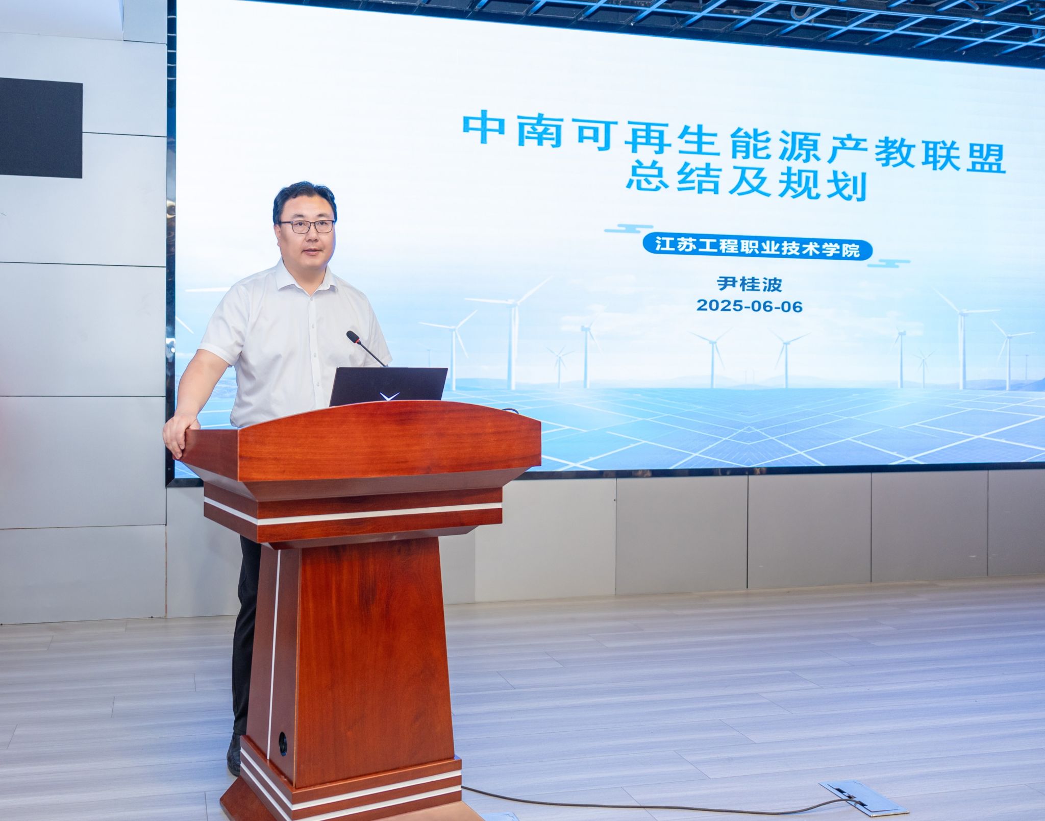 6月6日,2025年中南可再生能源产教联盟工作会议在我校举办。南非能源与水利培训署署长姆福·吉夫特·穆卡佩勒率团出席,江苏省现代服务业联合会、南通市教育局、中天科技、龙源风电和兄弟院校的近百名代表共同见证我校在国际化人才培养和新能源技术创新方面的突出成果。会议由校党委副书记丛彬彬主持。