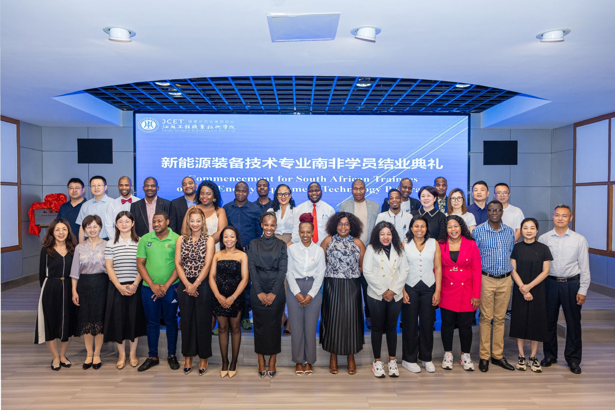 会上,江苏工院南非校友会正式成立。张忠与姆福·吉夫特·穆卡佩勒共同揭牌,标志着中南职业教育合作从短期培训迈向长期生态构建。校友会将持续促进毕业生与院校、企业的互动,为南非新能源行业输送更多高素质技术人才。