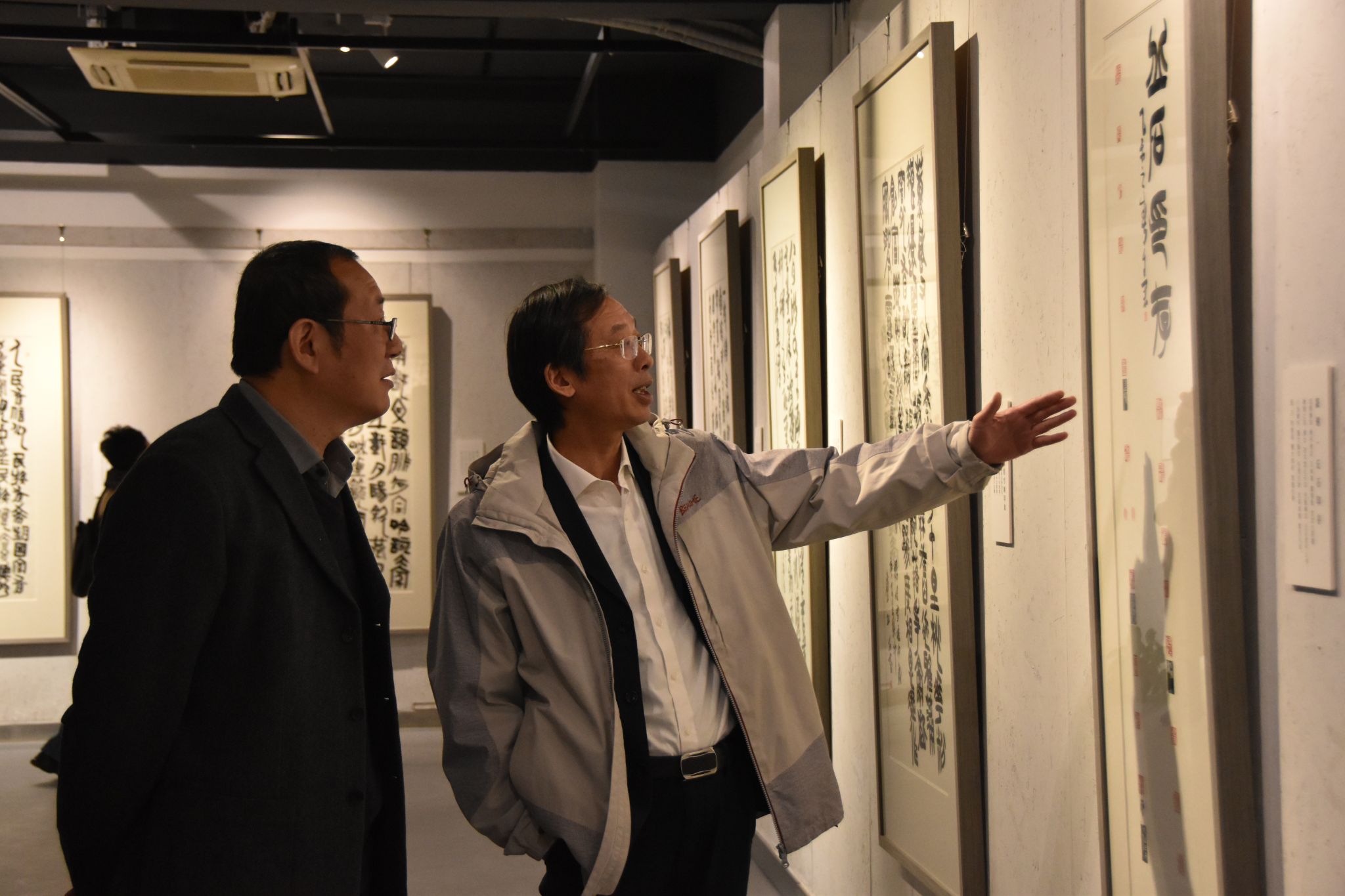 本次艺术展由我校主办、南通市书法家协会和艺术设计学院共同承办,展出的45幅书法及篆刻作品均由南通市文联副主席、南通市书法家协会主席丘石所作。他创作的主要题材是历代文人咏南通的美文美诗,尤其是张謇先生的诗赋,并在创作的字体、风格、形式等方面做到与诗文的吻合、共振,体现出了浓郁的“书卷气”。