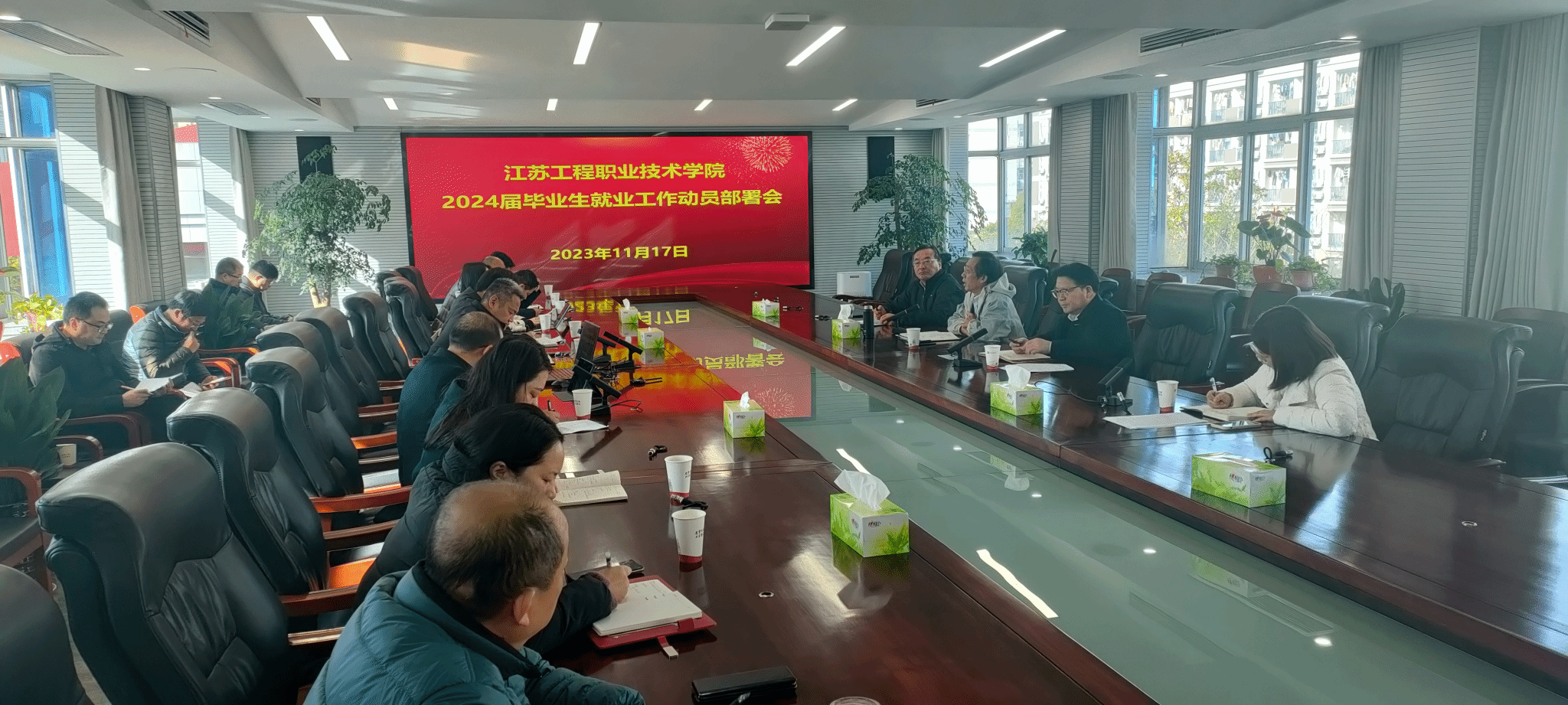 11月17日上午,我校2024届毕业生就业工作动员部署会在行政楼三楼第一会议室召开。校党委书记秦志林,校长陆锦军,党委副书记邓海龙,招就处、教务处、学工处、团委、创新创业学院等部门负责人、各二级学院党政负责人参会,会议由邓海龙主持。