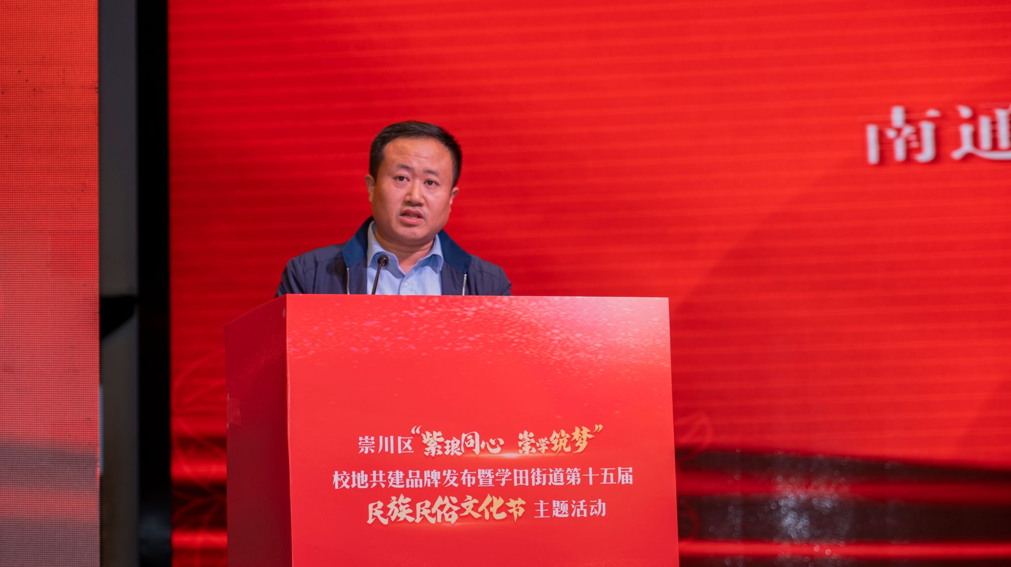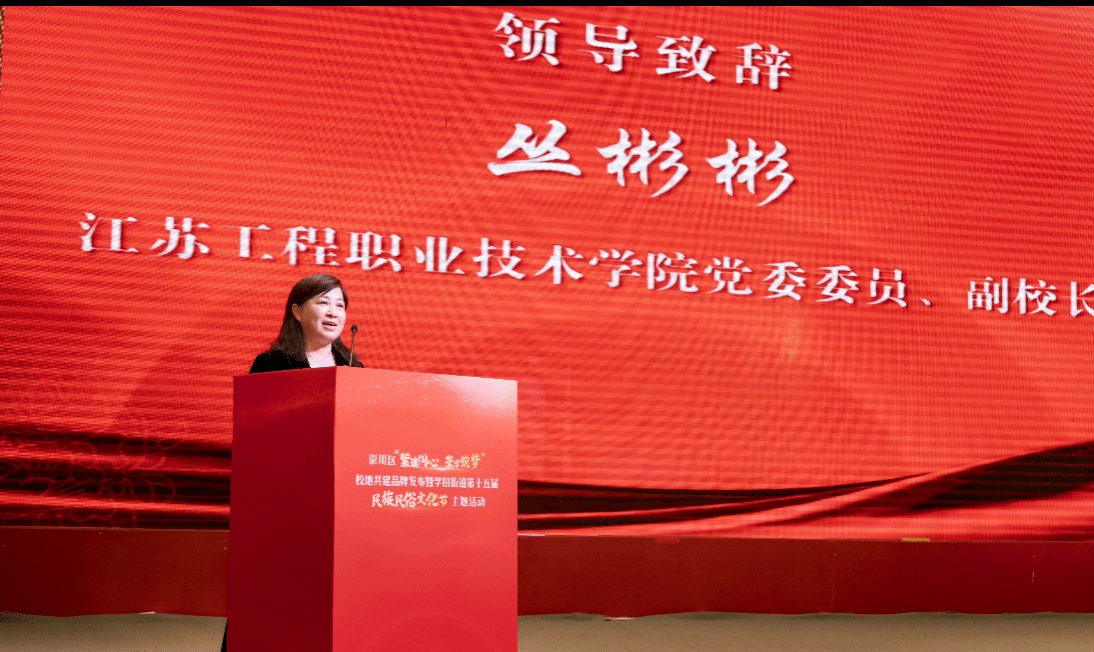 11月23日,江苏工程职业技术学院与崇川区委统战部联合举办的“紫琅同心 崇学筑梦”统战校地共建品牌发布暨学田街道第十五届民族民俗文化节在学校大礼堂举办。南通市民宗局副局长袁小进,崇川区副区长周卫平,崇川区委常委、统战部部长、组织部部长张明星,校党委委员、副校长丛彬彬等领导出席活动。
