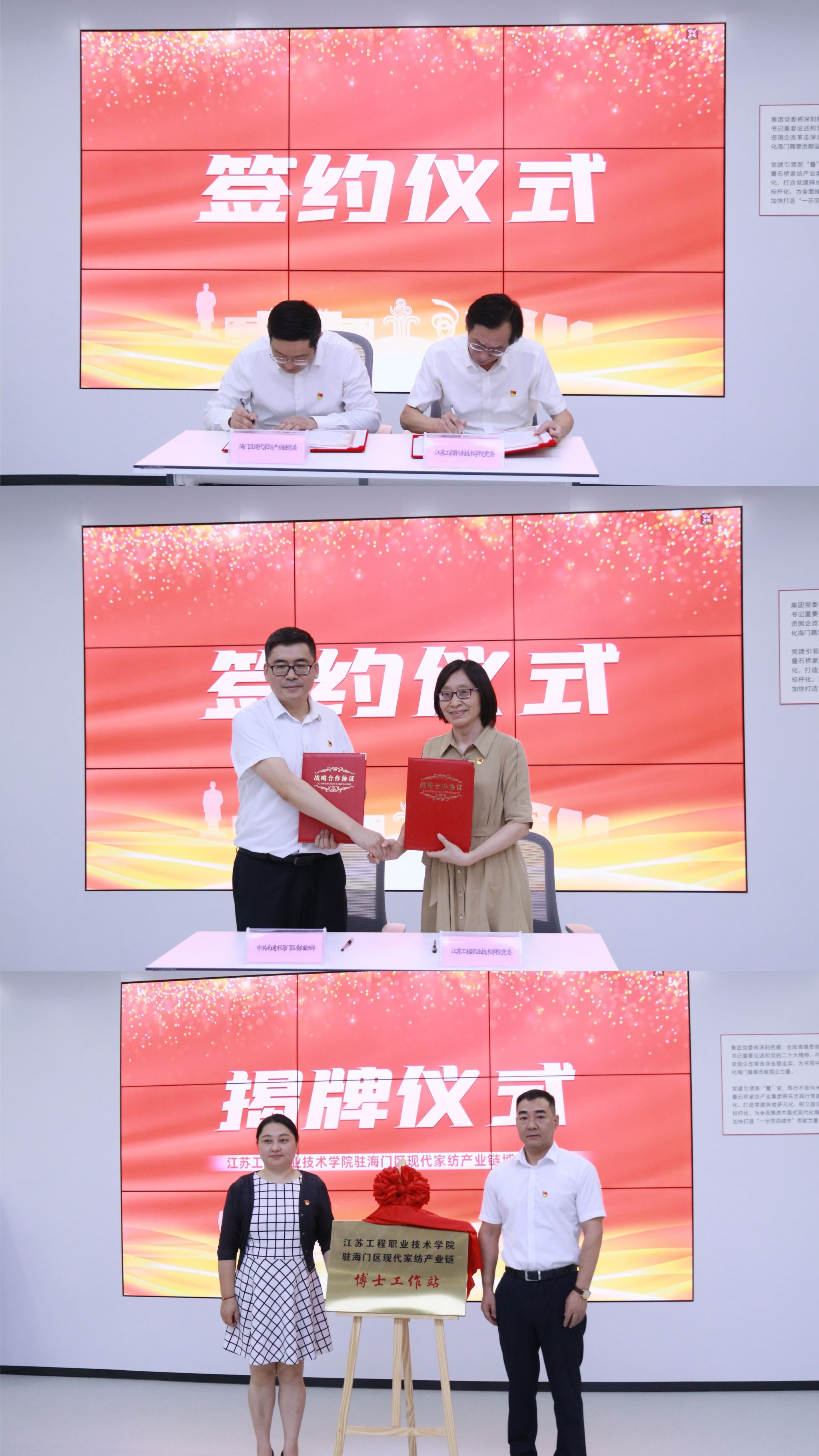 秦志林与三星镇党委书记、海门区现代家纺产业链联合党委副书记殷亮分别代表学校党委和海门区现代家纺产业链党委签署《党建共建协议》。仲岑然与海门区委组织部部务委员赵勇共同签署《校地共建党员教育基地框架协议》。活动中,范晔与海门区委社工部部长、两新工委书记朱红兵为“驻企博士工作站”揭牌,校组织部副部长、统战部副部长宁尚洁宣读了“双十行动”项目。