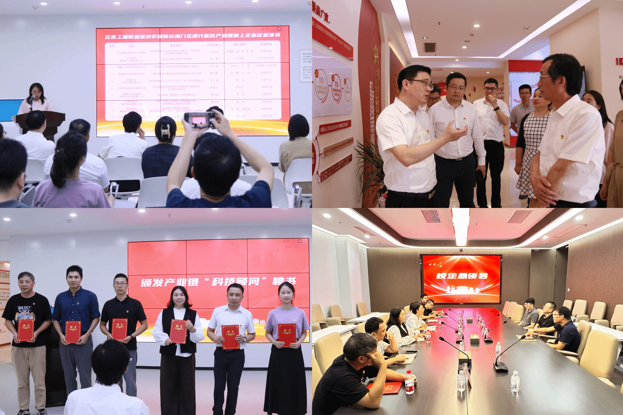 秦志林介绍了学校的办学历史、专业设置以及我校受海门组织部委托组建“定制村官”班的人才培养情况等。他指出,此次产业链党建共建活动,共同孕育“双十”攻坚项目,是双方聚焦资源共享、优势互补的战略选择,也是推动产教融合、服务地方经济的重要实践。学校将进一步以资源联享,促进产业升级;以团队联建,助力科教融汇;以人才联育,夯实发展根基,校地联手,共同探索发展新质生产力的新路径。