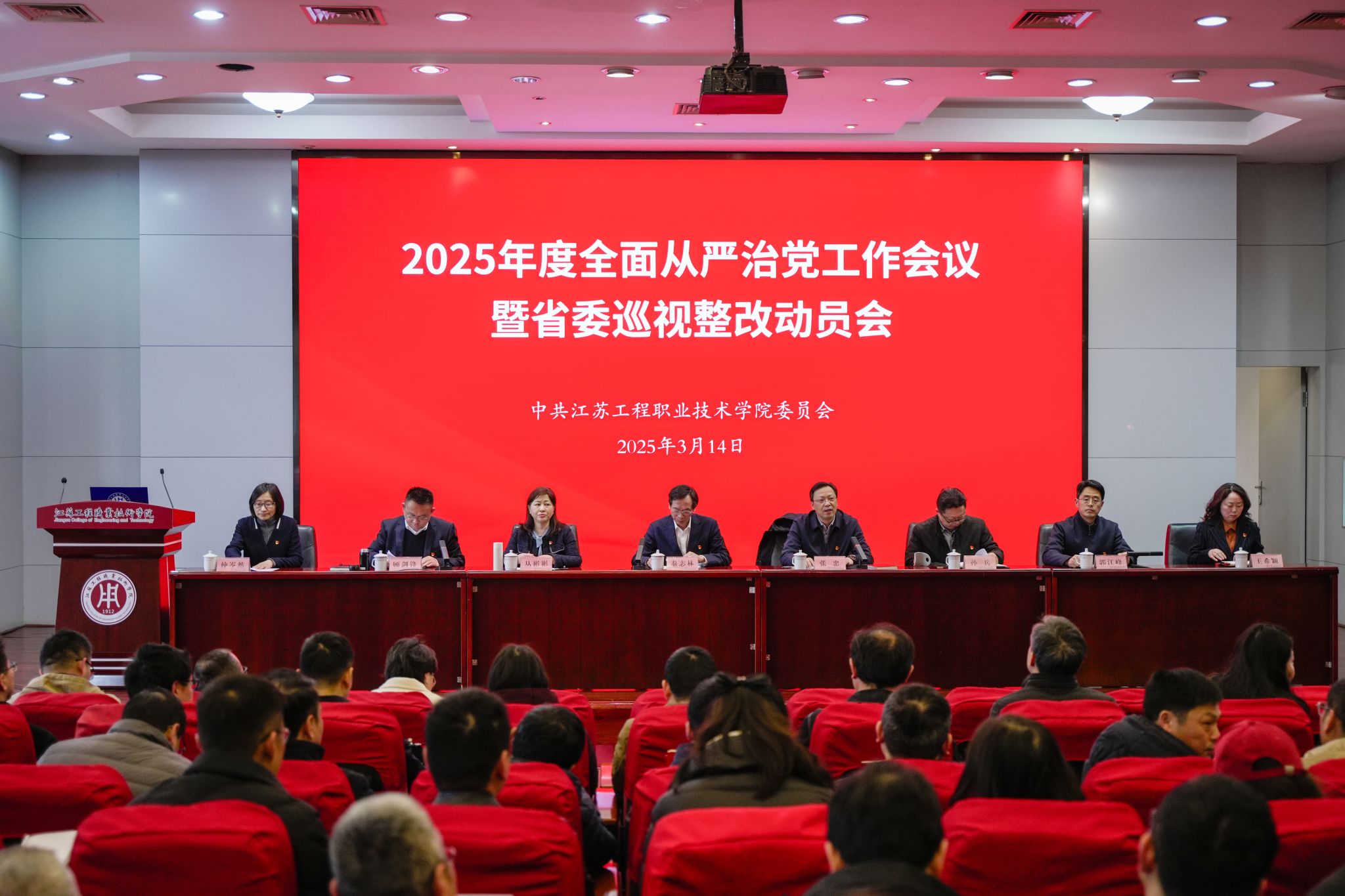 3月14日,我校在致知楼三楼报告厅召开2025年全面从严治党工作会议暨巡视整改动员会。校党委书记秦志林出席会议并讲话,党委委员、纪委书记(监察专员)顾剑锋作工作报告,党委副书记、校长张忠主持会议。全体校党委委员、纪委委员、副科级以上干部参加会议。