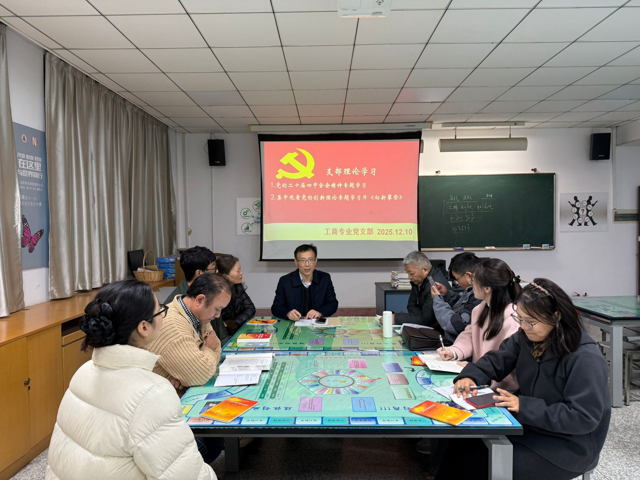 12月10日下午,经济管理学院党总支组织各支部开展深入学习贯彻党的二十届四中全会精神专题学习活动,学院党员教师参加了本次活动,活动由各党支部书记主持。