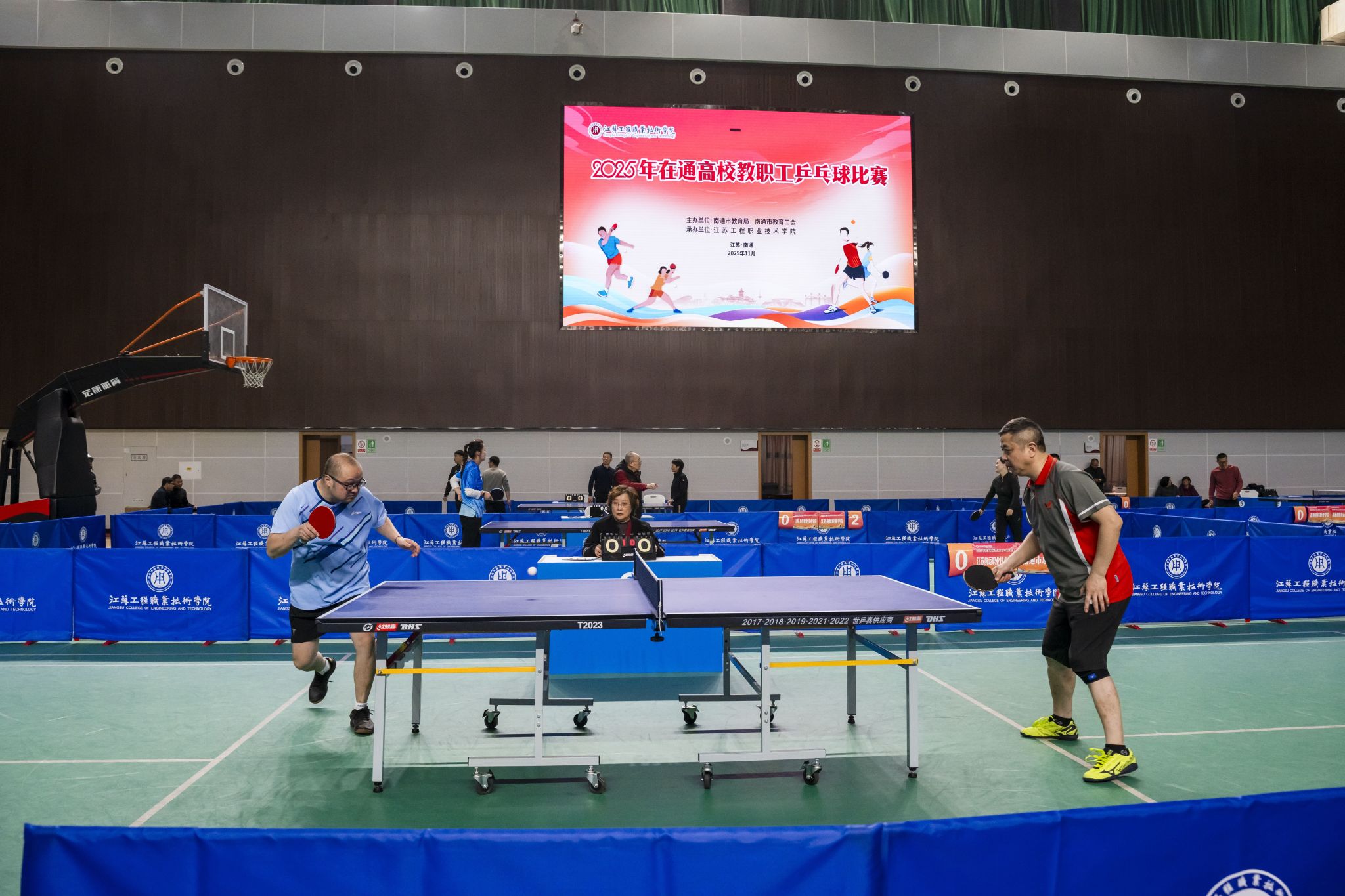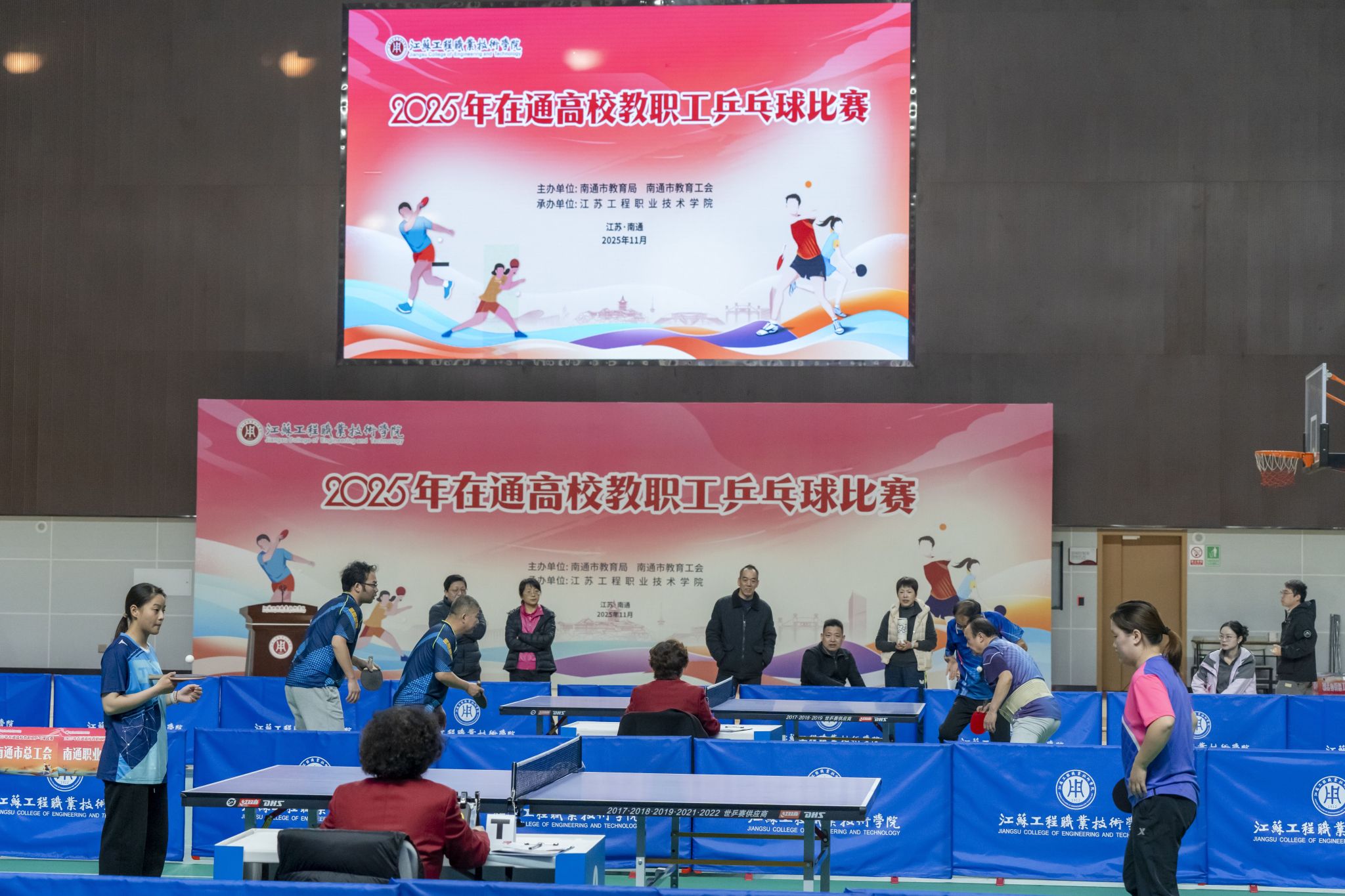 11月28日至29日,由南通市教育局、南通市教育工会主办,我校承办的2025年在通高校教职工乒乓球比赛在学校体育馆举行。来自全市11所高校及市总工会、市教育局机关共13支代表队参加了比赛。