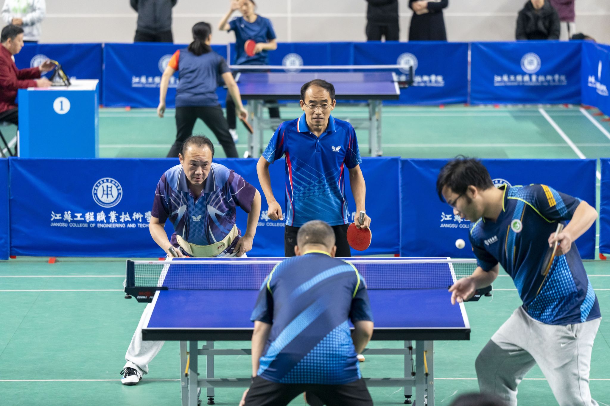 比赛现场,平日里耕耘于讲台的教师们和忙碌于管理服务岗位的职工们,迅速进入状态,推挡、削球、扣杀、弧旋球等精彩场面层出不穷,赢得了现场观众的阵阵掌声与喝彩。运动员们遵循“友谊第一、比赛第二”的原则,既展现了追求卓越的竞技精神,也体现了团结友爱、和谐共进的良好风尚。经过激烈角逐,南通理工学院夺得冠军,南通职业大学、江苏航运职业技术学院分获亚军和季军。