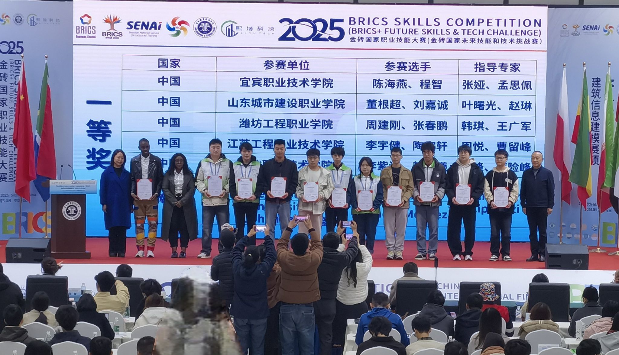 12月5日至8日,2025年金砖国家职业技能大赛建筑信息建模赛项(BRICS-FS-06)国际总决赛在宜宾职业技术学院成功举行。来自金砖国家的53支顶尖代表队齐聚一堂,展开了激烈角逐。我校建筑与交通工程学院参赛选手李宇健、陶宇轩凭借卓越的专业技能和默契的团队协作,取得第五名,成功跻身全球前六(全球奖),荣获总决赛一等奖,成为江苏省唯一获此殊荣的队伍。