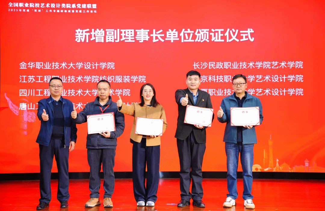 据悉,本次会议由广东轻工职业技术大学艺术设计学院承办,来自全国69家职业院校艺术设计类院系的150名党务工作者齐聚一堂,共探党建引领职业教育高质量发展新路径。此次当选联盟副理事长单位,既是对学院党建工作的充分肯定,更是一份责任。未来,纺织服装学院将以副理事长单位为契机,积极履行职责使命,深度参与联盟“紧密型共同体”建设,在党建品牌打造、课程思政创新、产教融合协同等方面发挥引领作用;同时,借助联盟平台广泛吸纳全国同类院校先进经验,持续深化“经天纬地”党建工作法创新实践,推动党建与教学、科研、育人工作深度协同,切实把党建 “软实力” 转化为专业发展“强引擎”,为学校高质量发展、职业教育服务文化传承与产业升级贡献更大力量。(纺织服装学院 刘雅楠/文 网络/图 冯高倩/推荐 宁尚洁/审核)