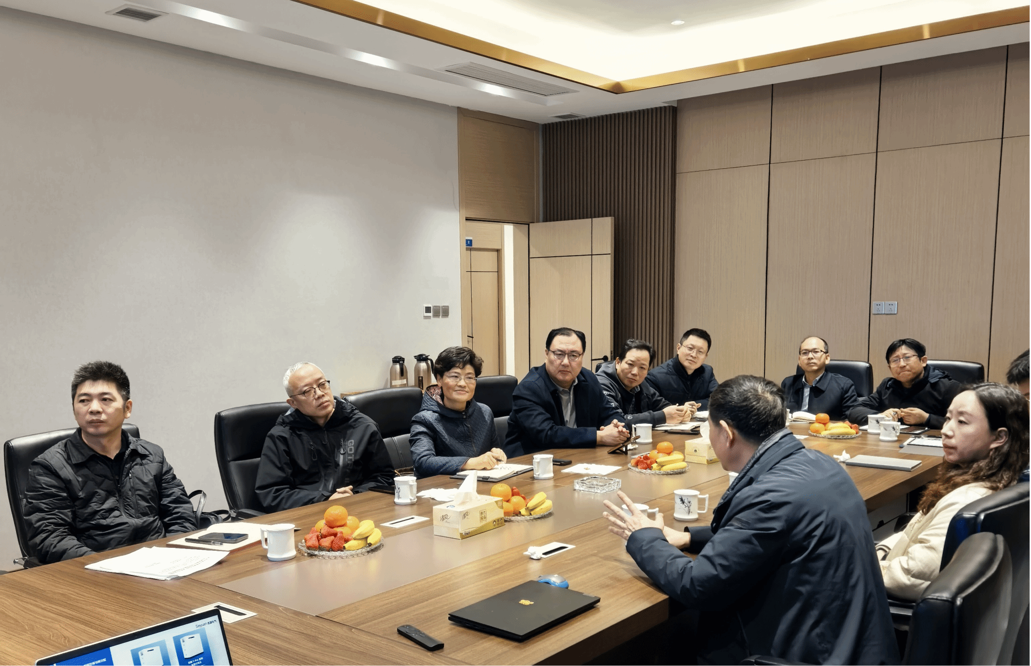在随后举行的座谈会上,钱锁梅对思源电气的热情接待和长期以来给予学校发展的支持表示感谢,并介绍了学校的办学特色、专业设置及人才培养情况。她指出,深化产教融合、加强校企合作是推动职业教育高质量发展的重要路径,也是提升技术技能人才培养质量的关键举措。双方围绕2026年学生实习就业计划、下半年重点合作项目、人才共享共用机制等方面进行了深入探讨。钱锁梅表示,期待以此次考察为契机,进一步精准对接企业需求,在学生实习就业、订单班培养、技术协同创新、师资互聘共用等方面开展更加紧密的合作,共同构建校企协同育人的新模式,实现互惠共赢、共同发展。