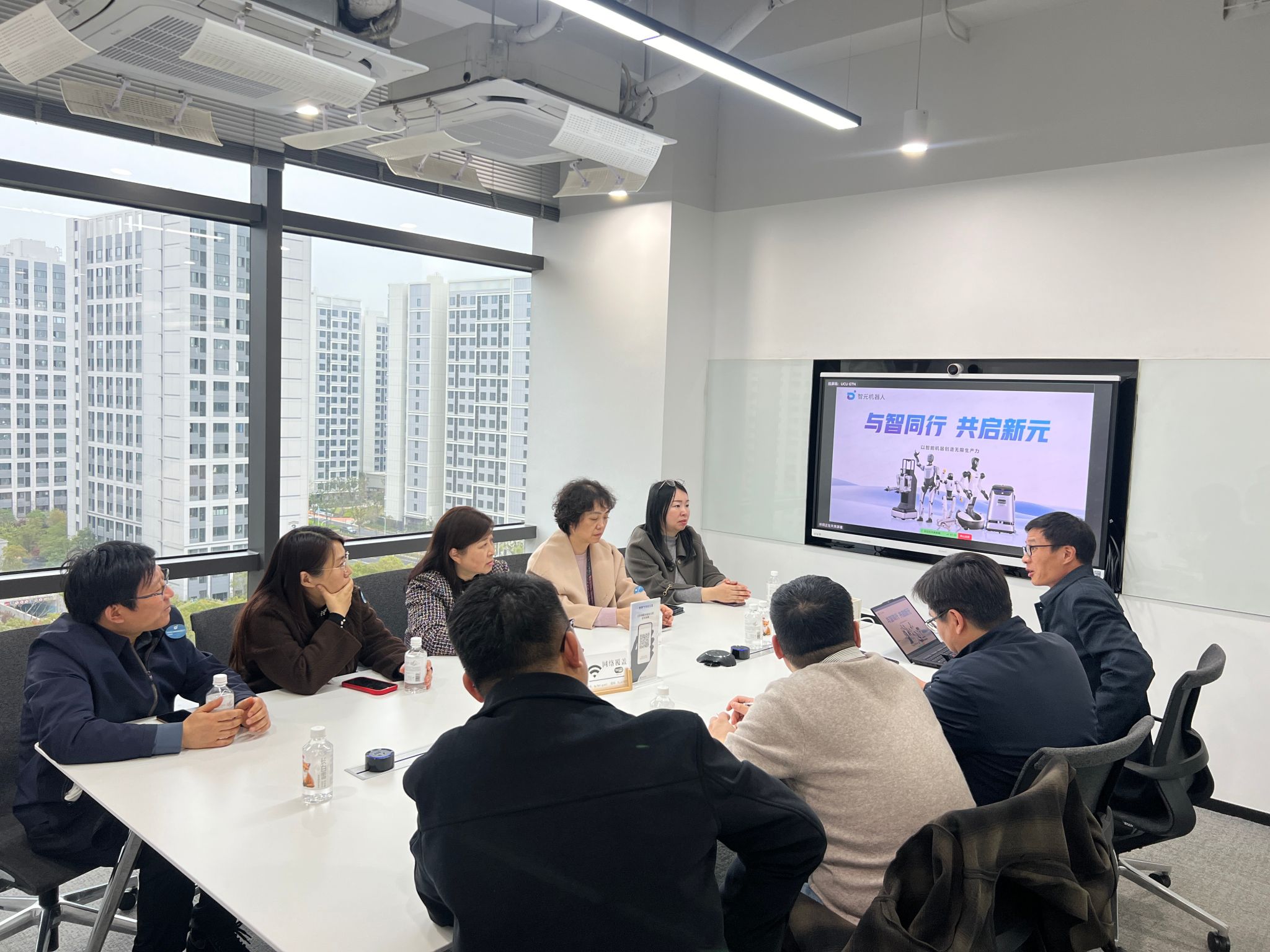 在智元机器人,我校一行人参观了企业数采中心和具身机器人展厅,深入了解智元作为中国具身智能领域头部企业的产业布局、技术优势与创新成果,现场体验机器人智能交互、自主作业等核心功能。座谈会上,校企双方围绕人工智能与机器人技术融合、人才培养模式创新、产教融合落地等话题展开深度交流。双方一致认为,智能制造产业的快速发展对高素质复合型人才需求迫切,校企双方可依托智元机器人的技术优势与我校的教育资源,在课程共建、师资共培、项目合作、实习就业等方面深化合作,将企业真实项目融入教学环节,推动教育链、人才链与产业链、创新链深度融合。