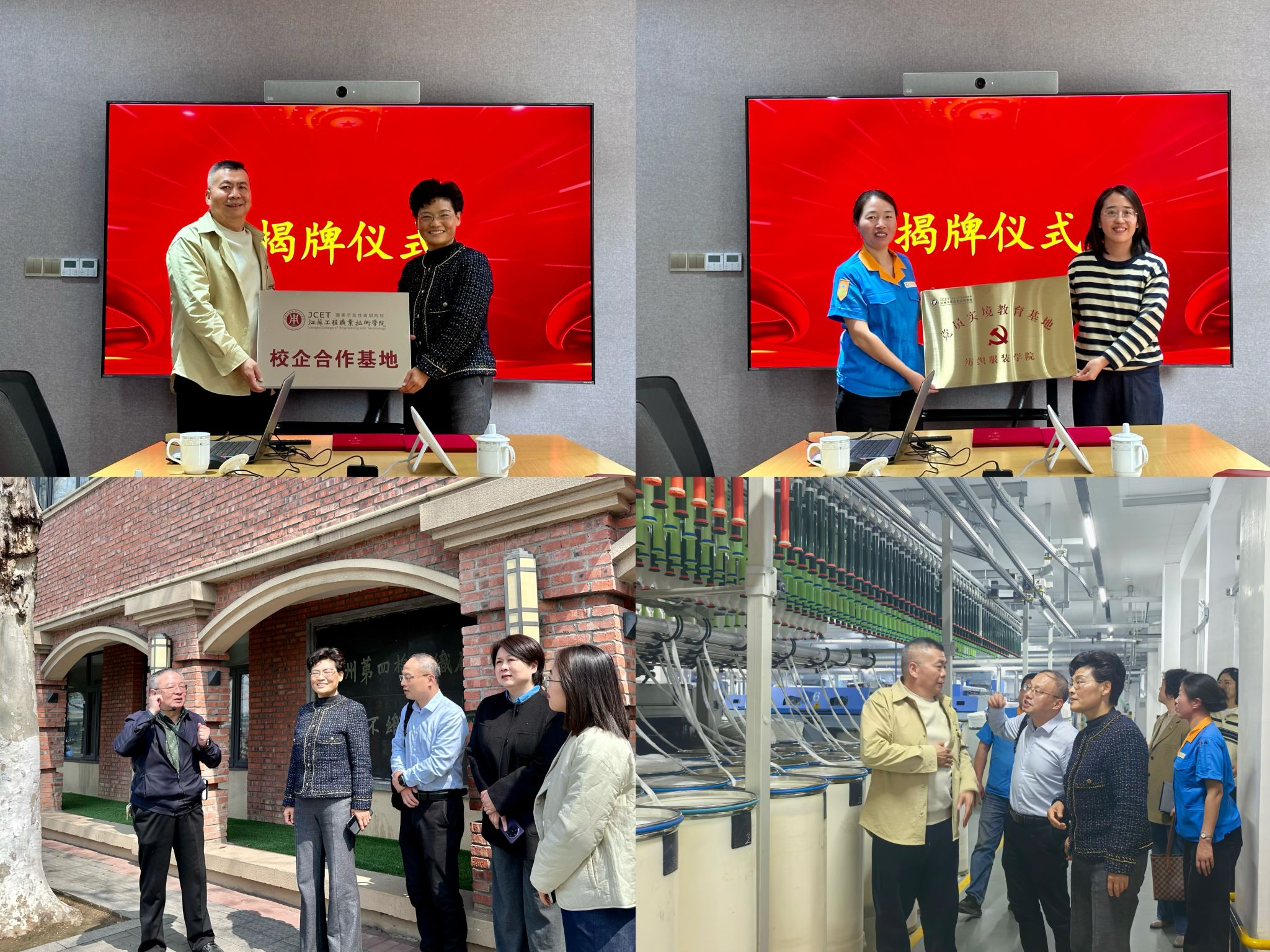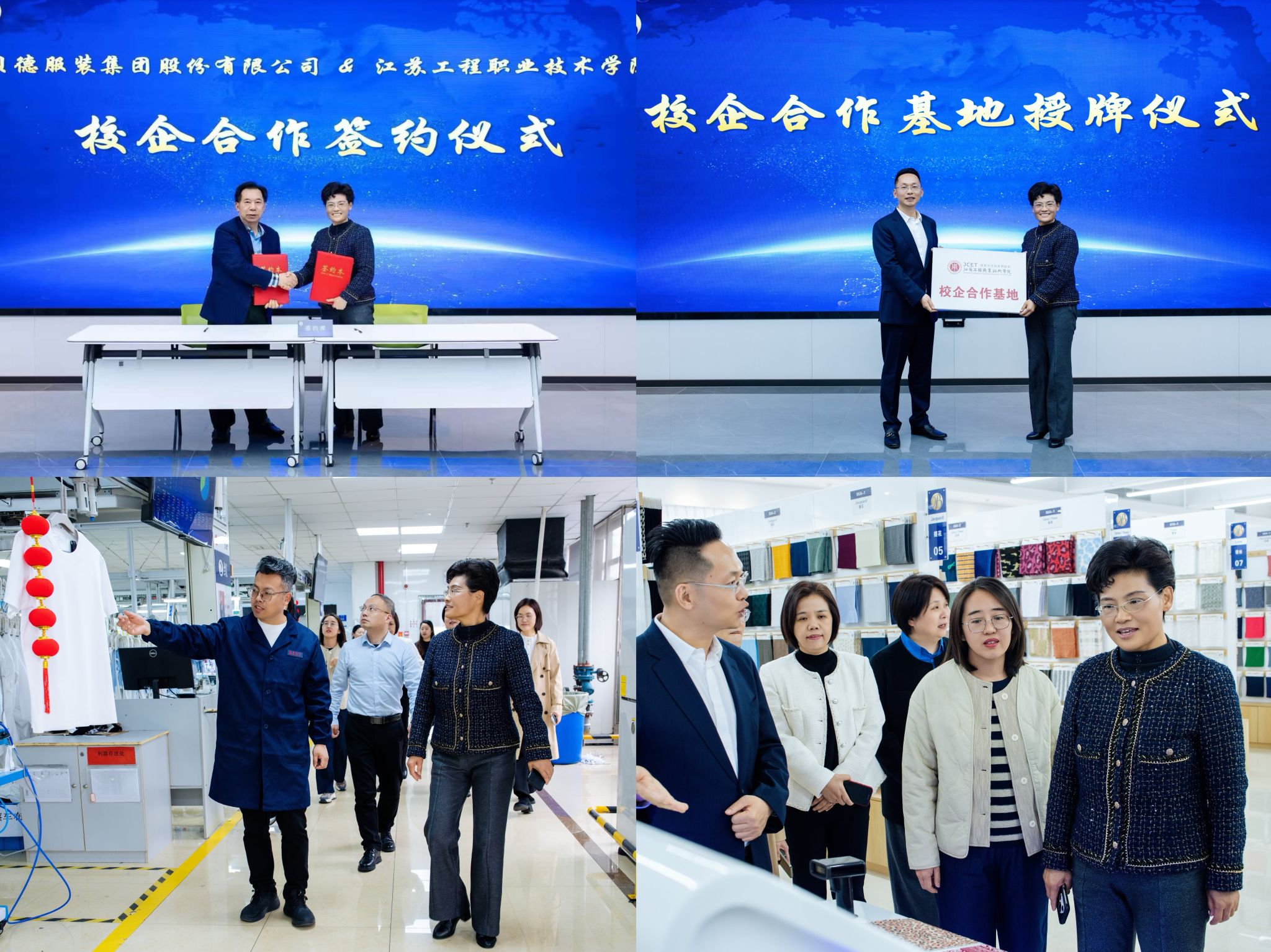 座谈会上,钱锁梅介绍了学校办学特色与人才培养成果。洪杰介绍了纺织服装学院师资队伍、专业设置及生源情况。校企双方就学生实习就业、教师下企业实践、共建产业学院、留学生联合培养、员工培训等达成多项合作意向。学校与两家企业分别签订校企合作框架协议,并为“校企合作基地”揭牌。与虹纬纺织共建“党员实境教育基地”,进一步深化校企党建共建。