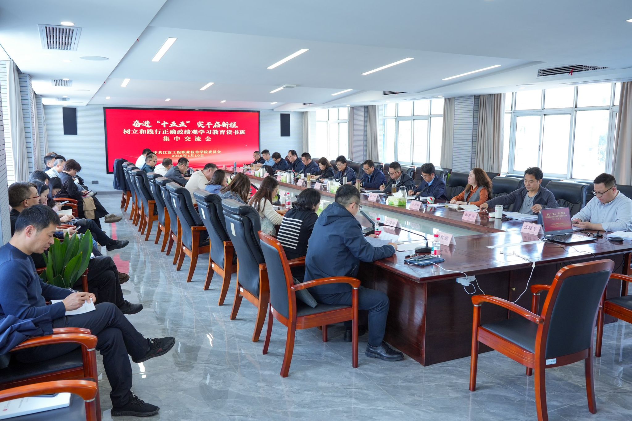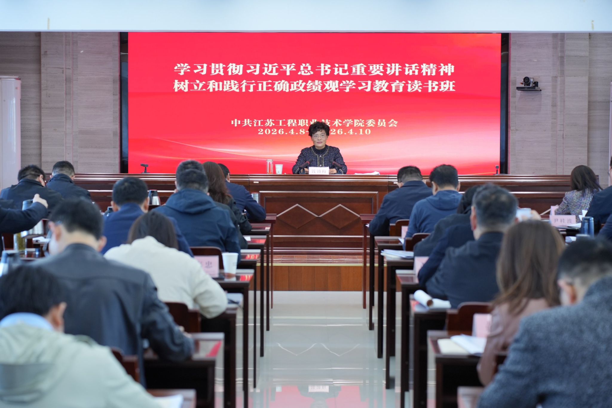 开班仪式上,钱锁梅指出,举办树立和践行正确政绩观学习教育读书班,是学校党委深入学习贯彻习近平新时代中国特色社会主义思想、推动党员干部校准政绩观偏差的重要部署。她强调,要深入学习贯彻习近平总书记对江苏工作、对教育工作的重要讲话精神,重点围绕习近平总书记参加十四届全国人大四次会议江苏代表团审议时的重要讲话、习近平总书记在全国教育大会上的重要讲话精神和对职业教育的重要指示批示精神和给江苏教育系统师生重要回信精神。要带着使命学、带着问题学、带着思考学,深刻领悟总书记重要讲话精神的重大意义、丰富内涵和实践要求,牢记嘱托、感恩奋进,深刻领悟“两个确立”的决定性意义、坚决做到“两个维护”,进一步增强树立和践行正确政绩观的思想自觉和行动自觉,扎实做好“十五五”开局之年各项工作。