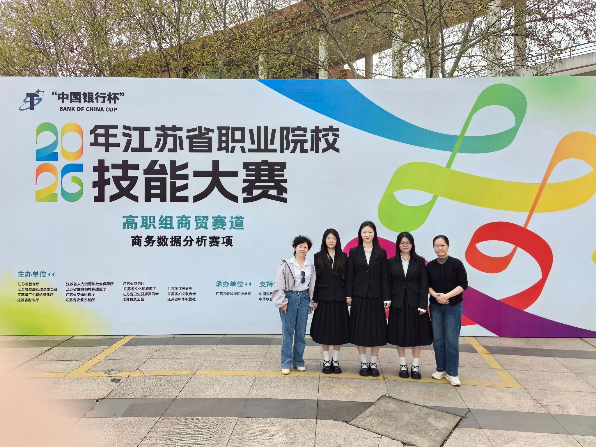 在2026年江苏省职业院校技能大赛“商务数据分析(商贸赛道)”赛项中,由肖琦、杜佳担任指导老师,孔舒星、莫愁、杨元梦等三名学生组成的团队,历经数据处理、报告撰写、直播营销、现场展示等全流程比拼,凭借扎实的专业技能、默契的团队配合以及严谨的职业态度,荣获该赛项高职组二等奖,彰显了学校电商专业数字技能人才培养的扎实成效。